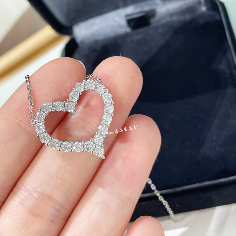 莫桑钻石爱心镂空吊坠项链桃心满钻925银镀白金高级感气质锁骨链