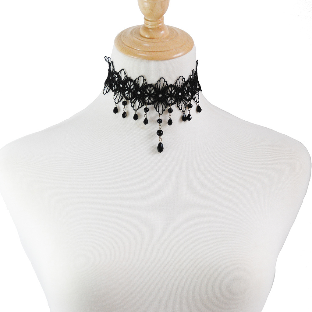 choker性感蕾丝宽版吊坠花朵黑色婚纱脖子饰品锁骨毛衣链正品颈饰