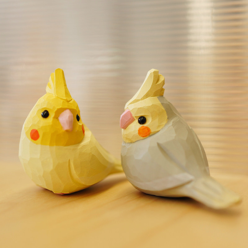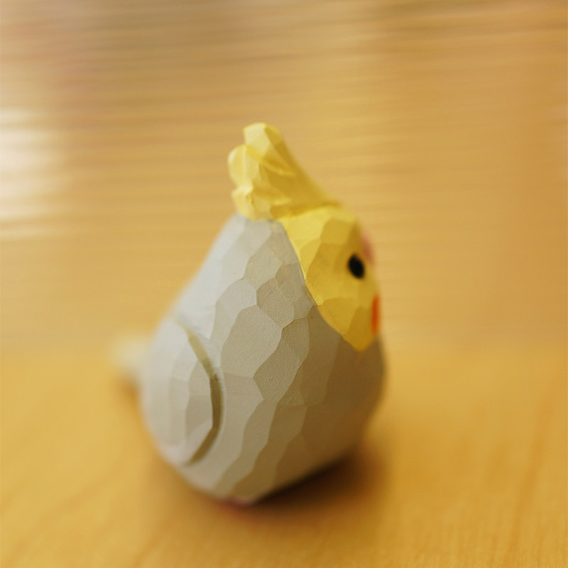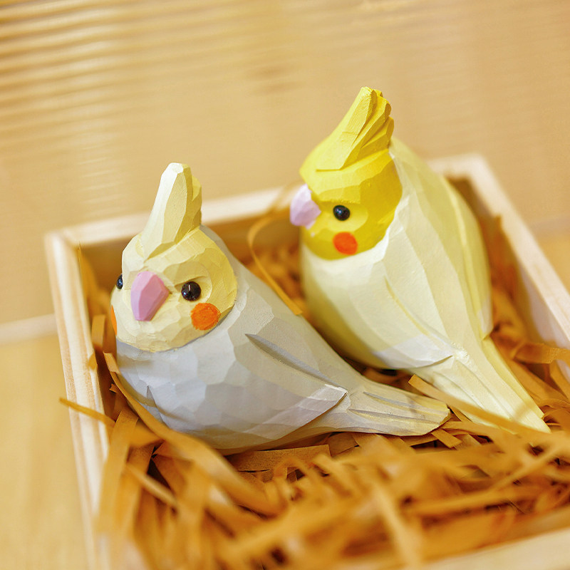 木刻自习室木雕小鸟 玄凤鹦鹉 可爱治愈纯手工桌面摆件新年礼物