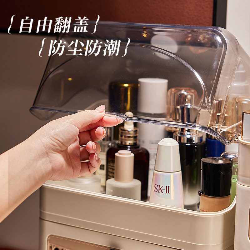 中古风口红首饰盒奶油风卧室梳妆台桌面装饰摆件化妆台抽屉收纳盒