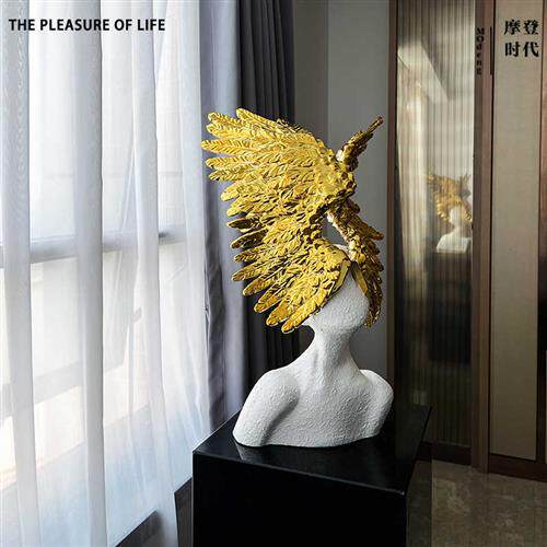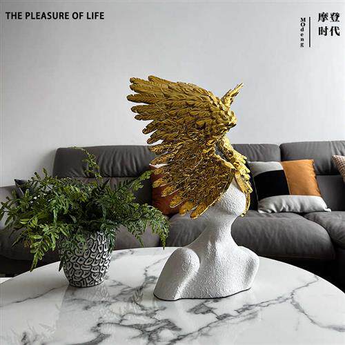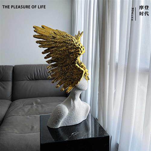 速发北欧轻奢样板房样品屋展示中心天使人像雕塑白色人物玄关摆件