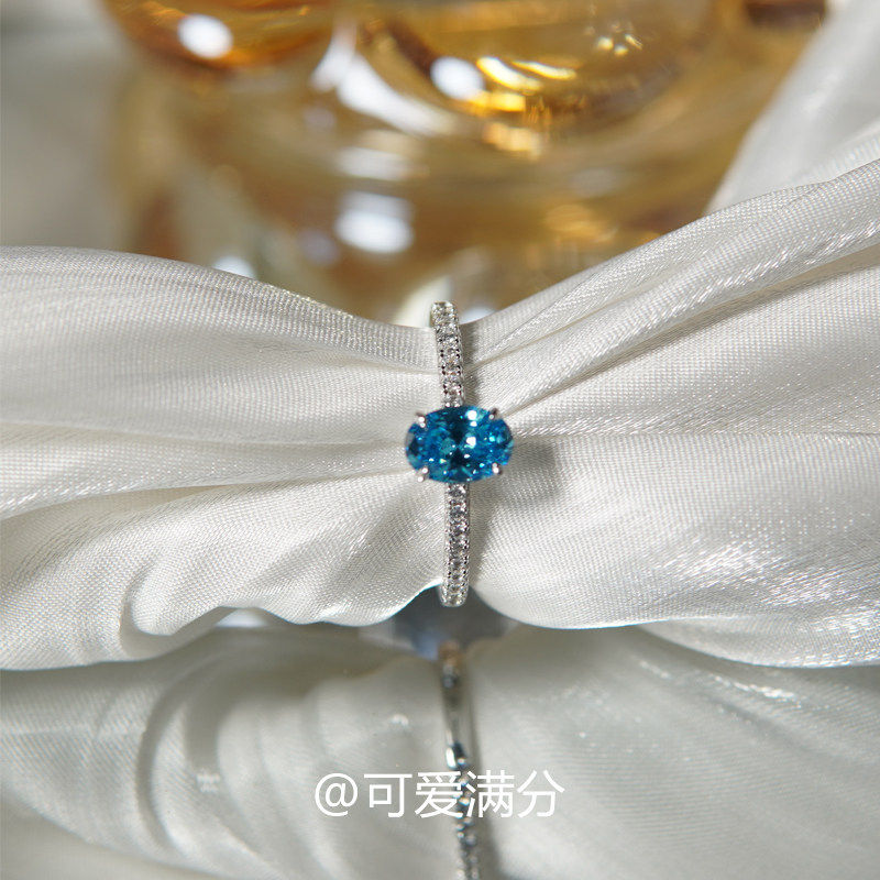 椭圆形海蓝色锆石戒指小众设计感高颜值闪钻食指戒个性冷淡风指环
