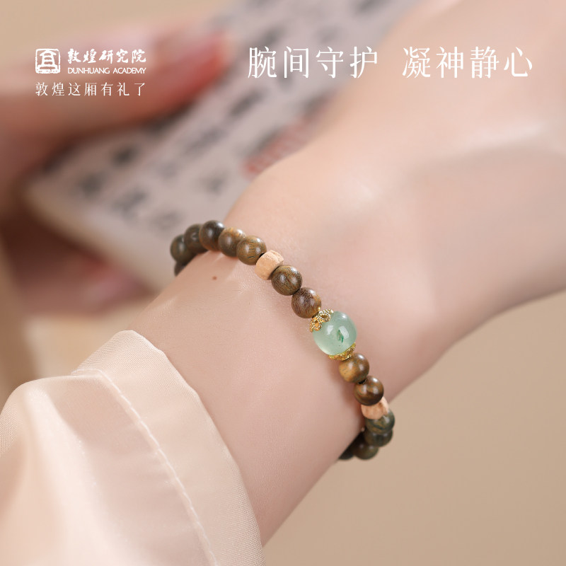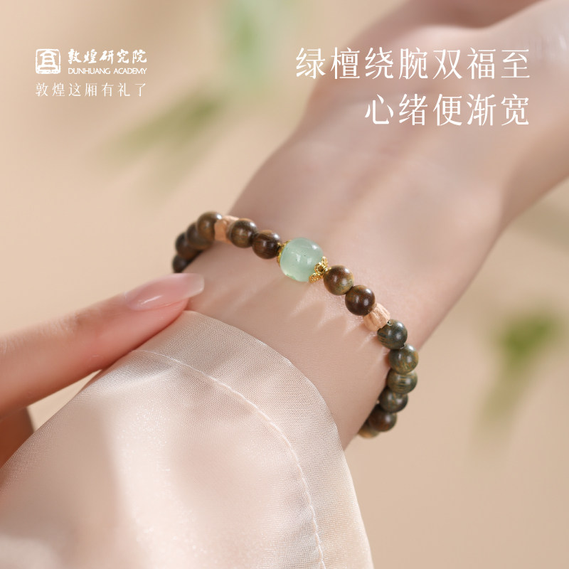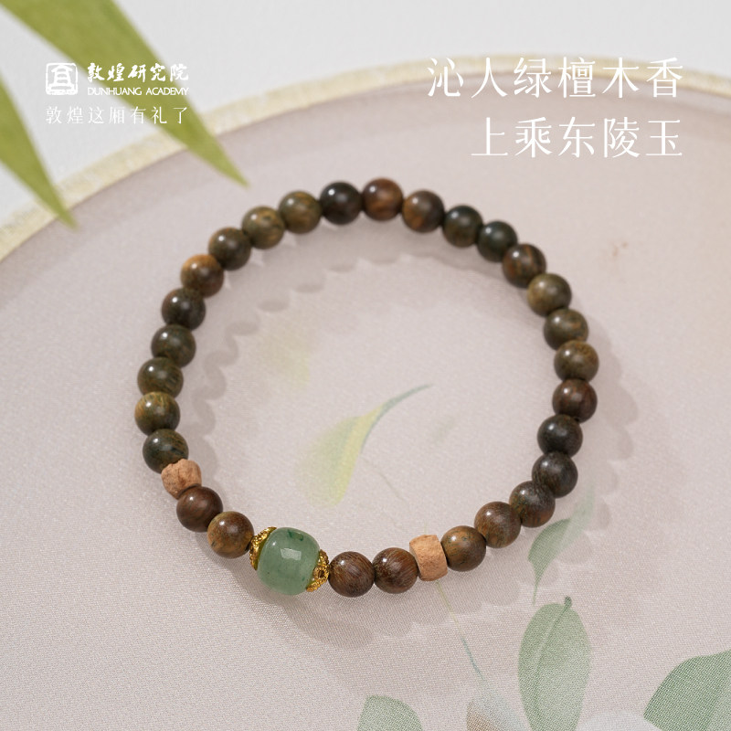 敦煌研究院天然绿檀木百香籽核桃单圈手串女款文创文玩手链和田玉