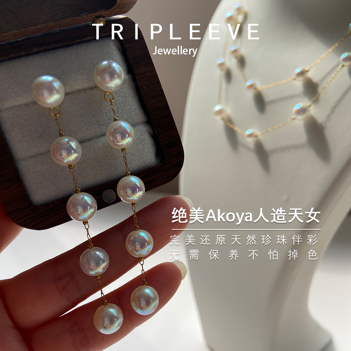 满天星流苏长珍珠耳线 Akoya经典极光天女可拆卸设计两戴耳环耳钉