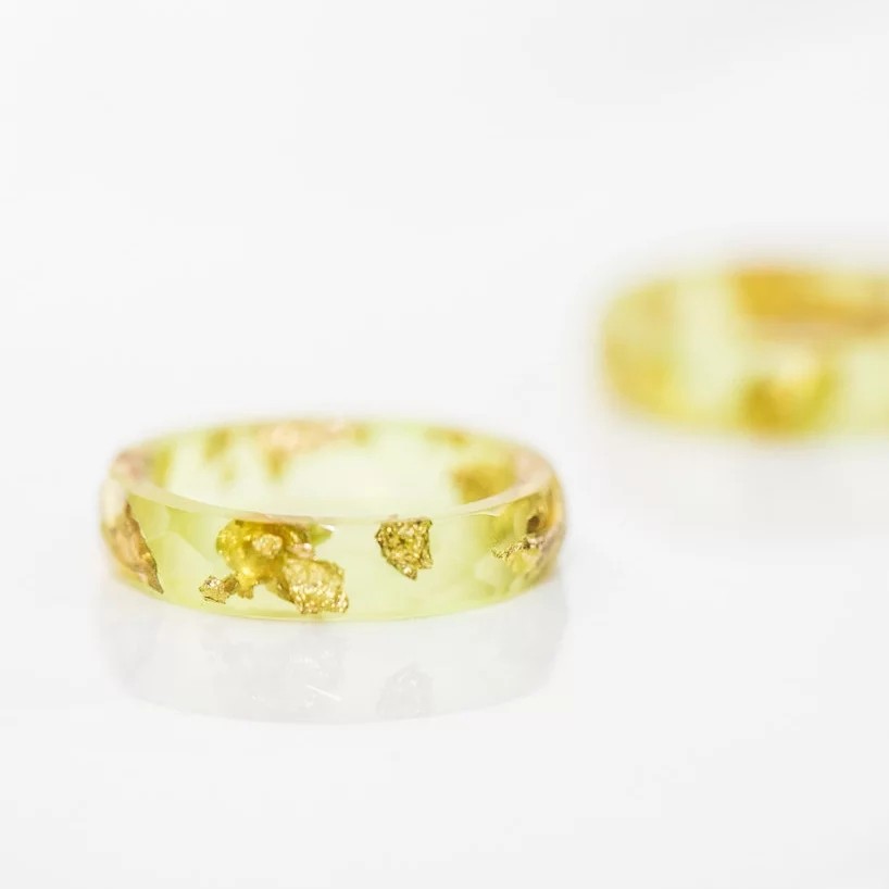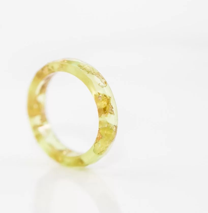 狮心兔 手工制作 柠檬黄 金箔戒指 半透明戒指 树脂戒指 棱面戒指