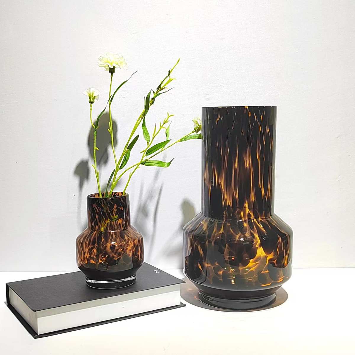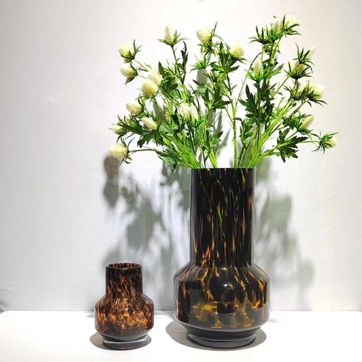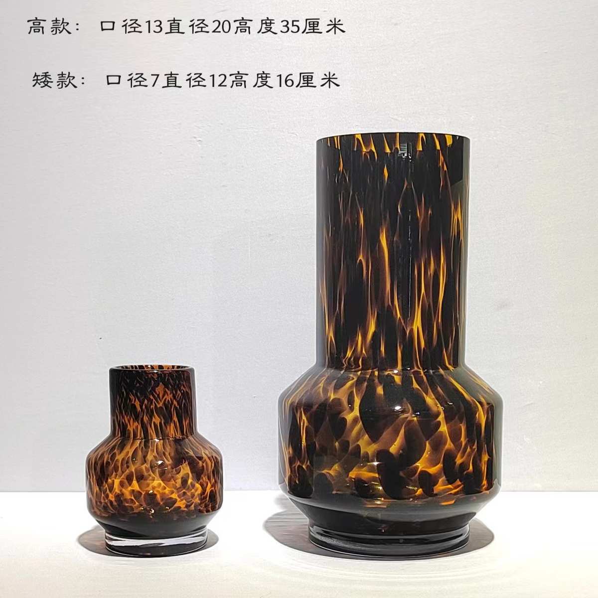 现代创意豹纹玻璃花瓶家居桌面插花摆件样板房桌面软装设计摆件
