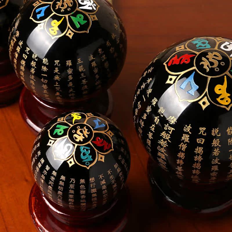 李居明黑曜石球摆件圆球水晶球客厅办公室心经风水球摆件大小号