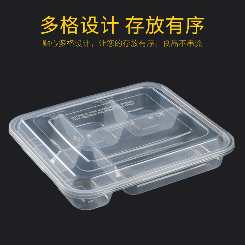 一次性餐盒五格长方形外卖打包盒四格透明三格分格便当快餐饭盒