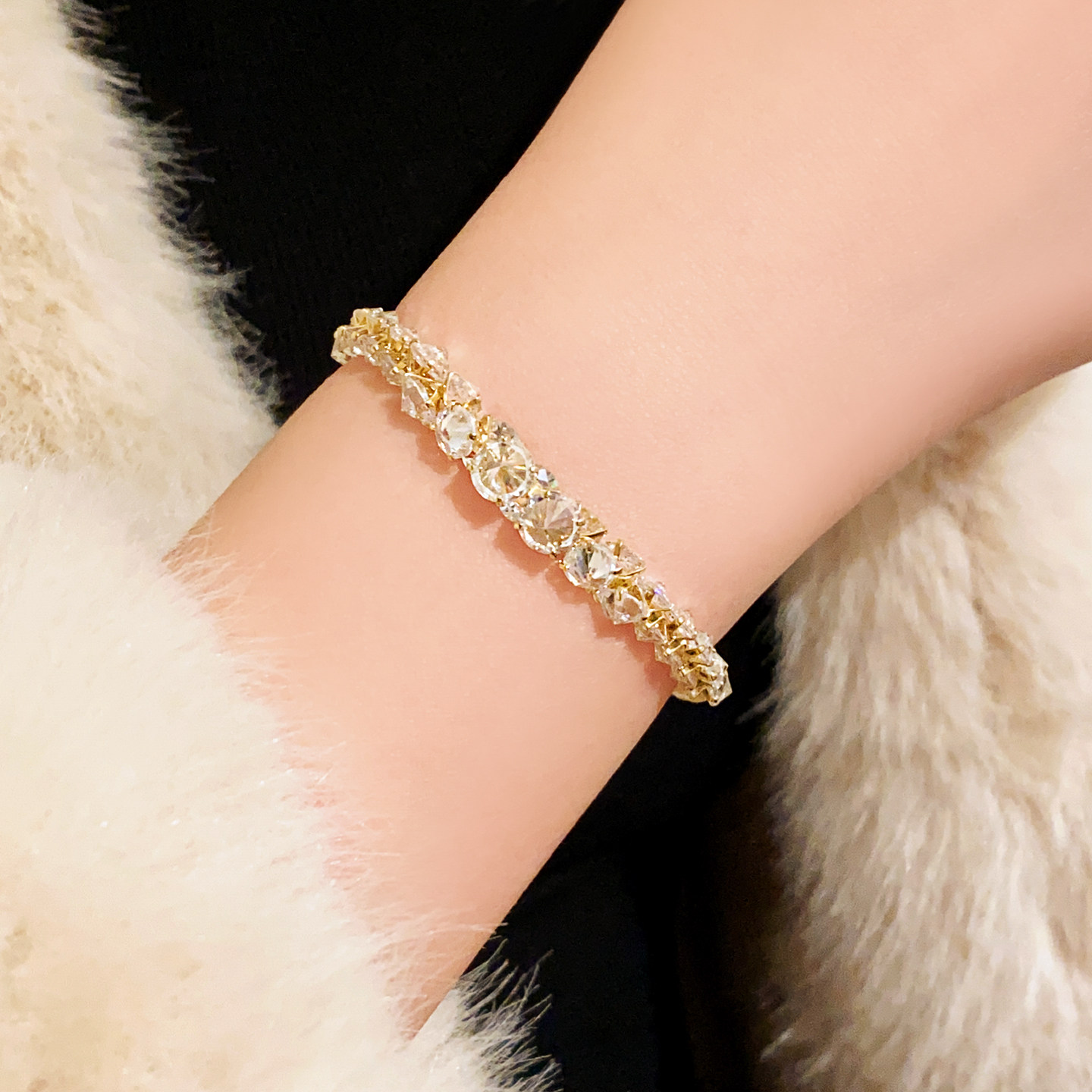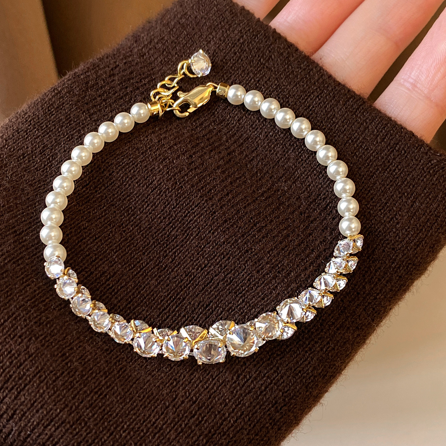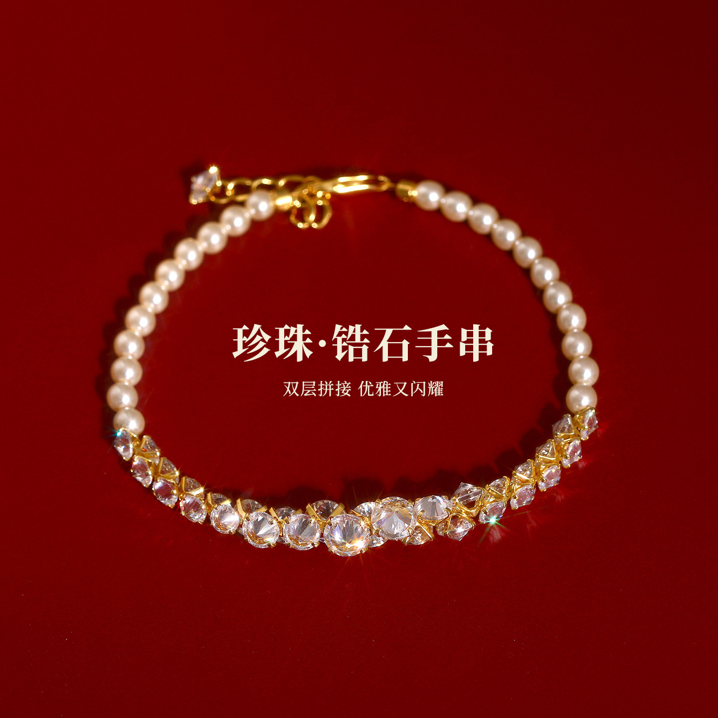 古里雅白色珍珠锆石拼接手串手链女款轻奢小众精致高级感新年手饰