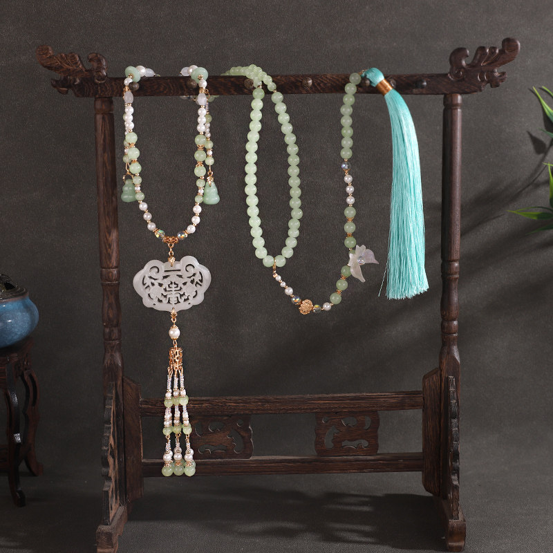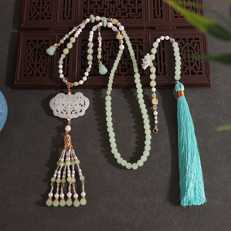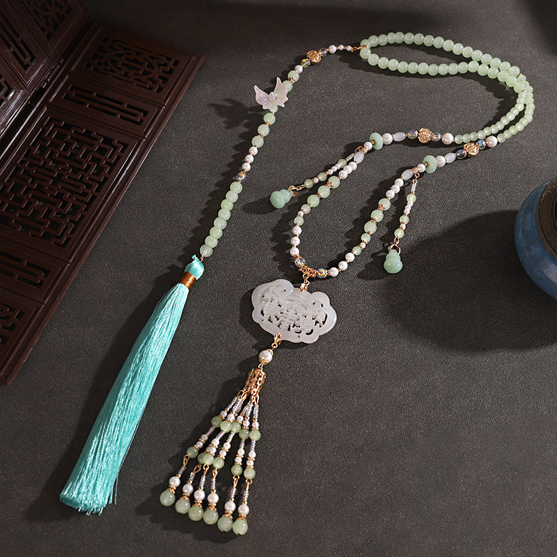 新中式国潮璎珞项链复古仿珍珠背云流苏汉服配饰马面明制古风项链