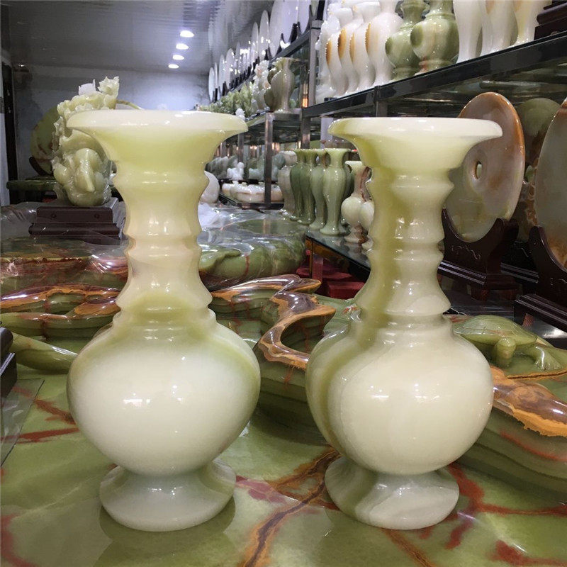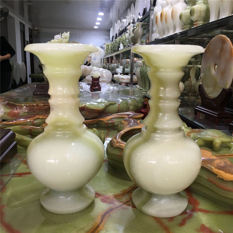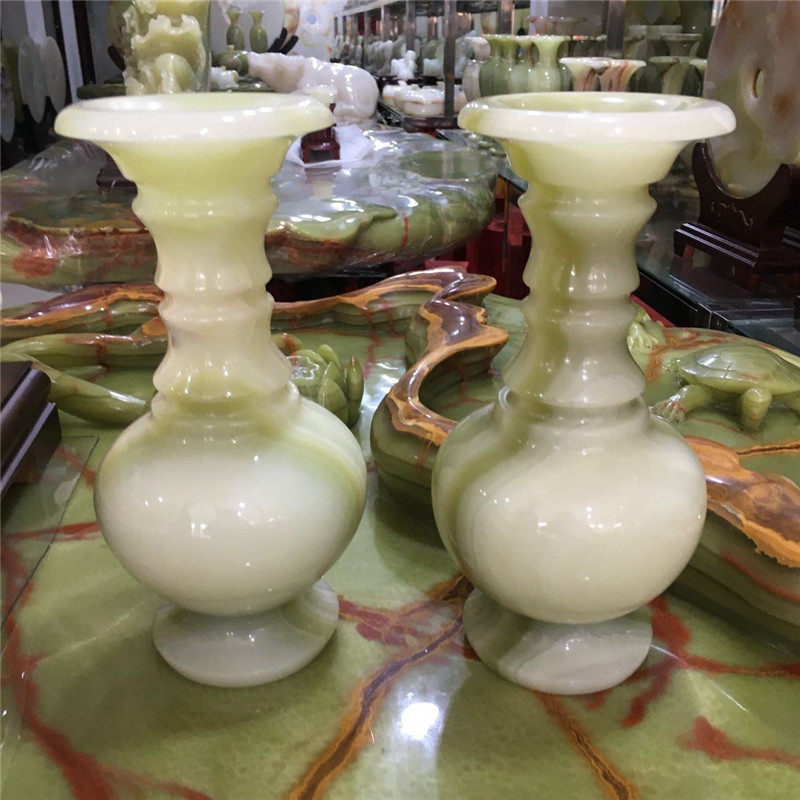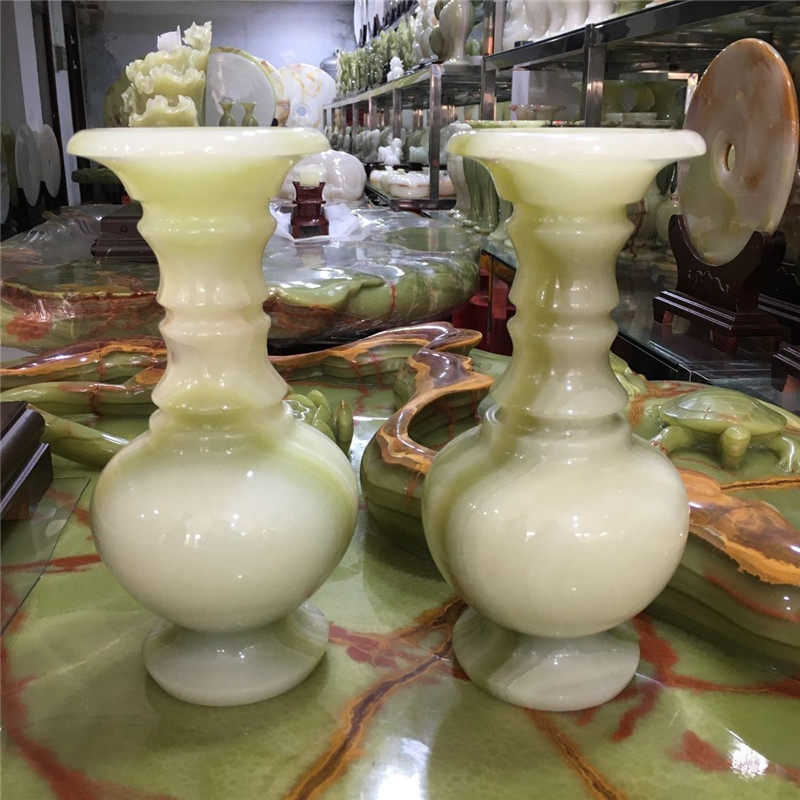 天然阿富汗玉石花瓶古青玉绿色高脚摆件家居收藏送礼风水摆设吉祥