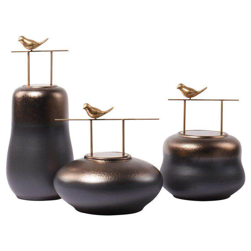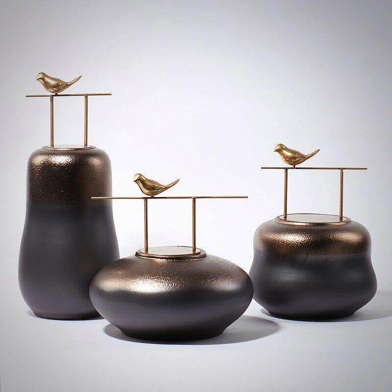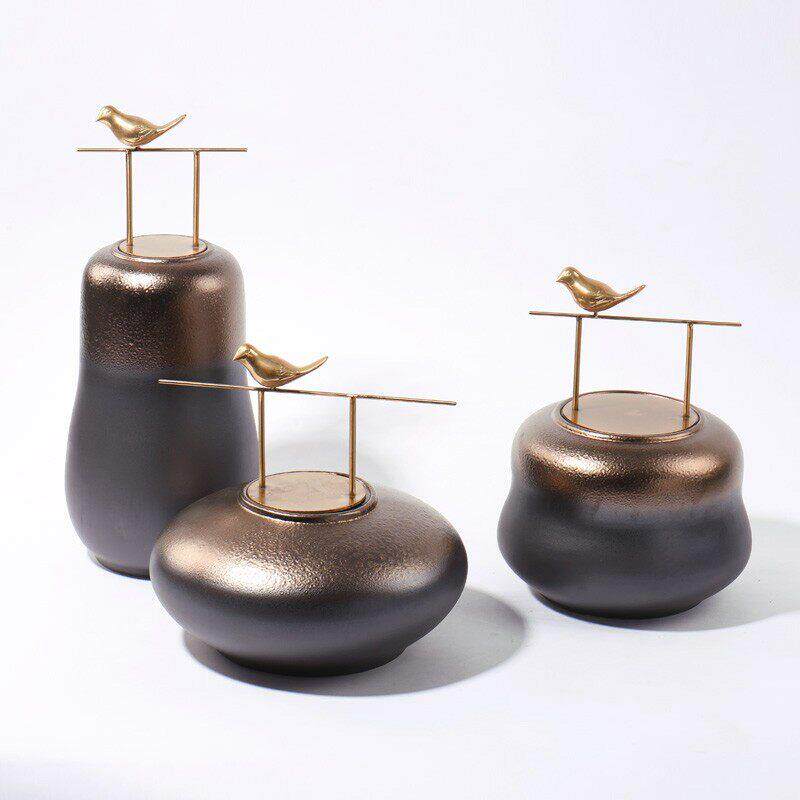 新中式禅意陶瓷储物罐摆件酒店样板房博古架软装饰品客厅玄关摆设