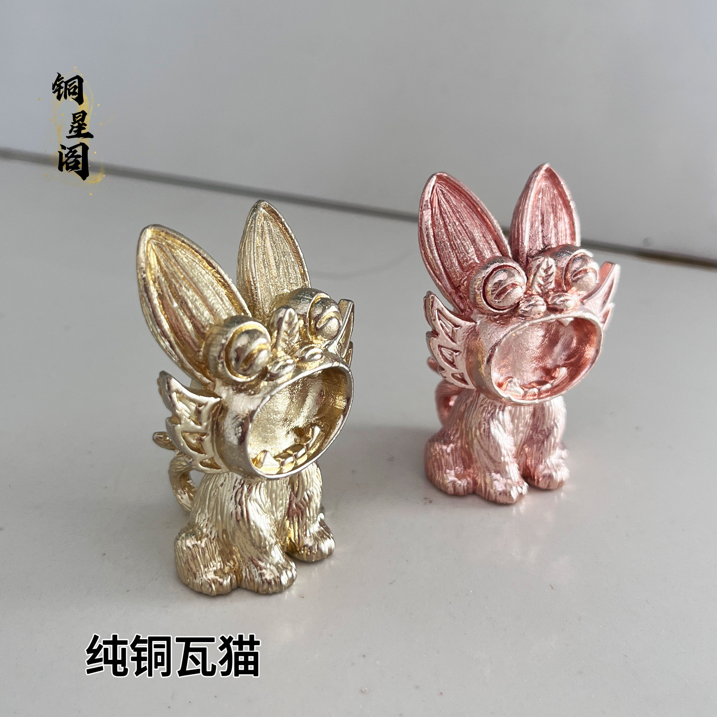 纯铜瓦猫云南手工紫铜黄铜猫香插摆件猫创意礼品开业小摆件卧式