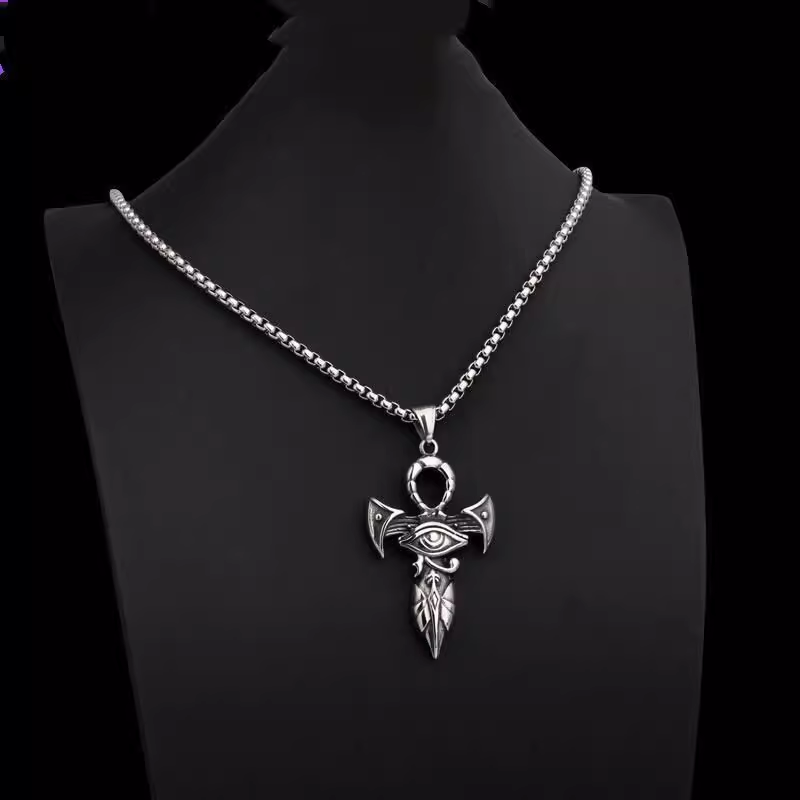 荷鲁斯之眼项链男潮帅气复古幸运安卡十字架吊坠钛钢饰品毛衣链