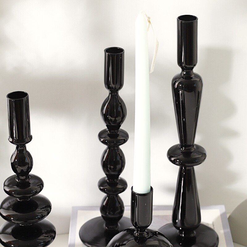 网红黑色系玻璃烛台民宿咖啡馆餐桌蜡烛摆件摄影道具ins风家居