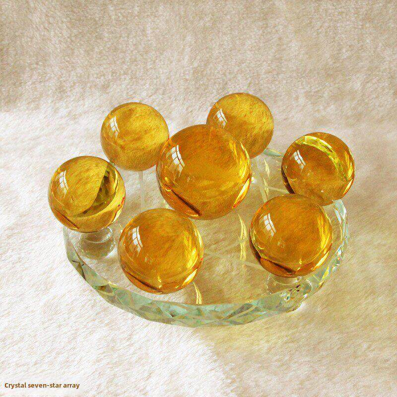 采购产品水晶球七星阵列摆件水晶礼品粉红色紫色和黄色的球摆件家