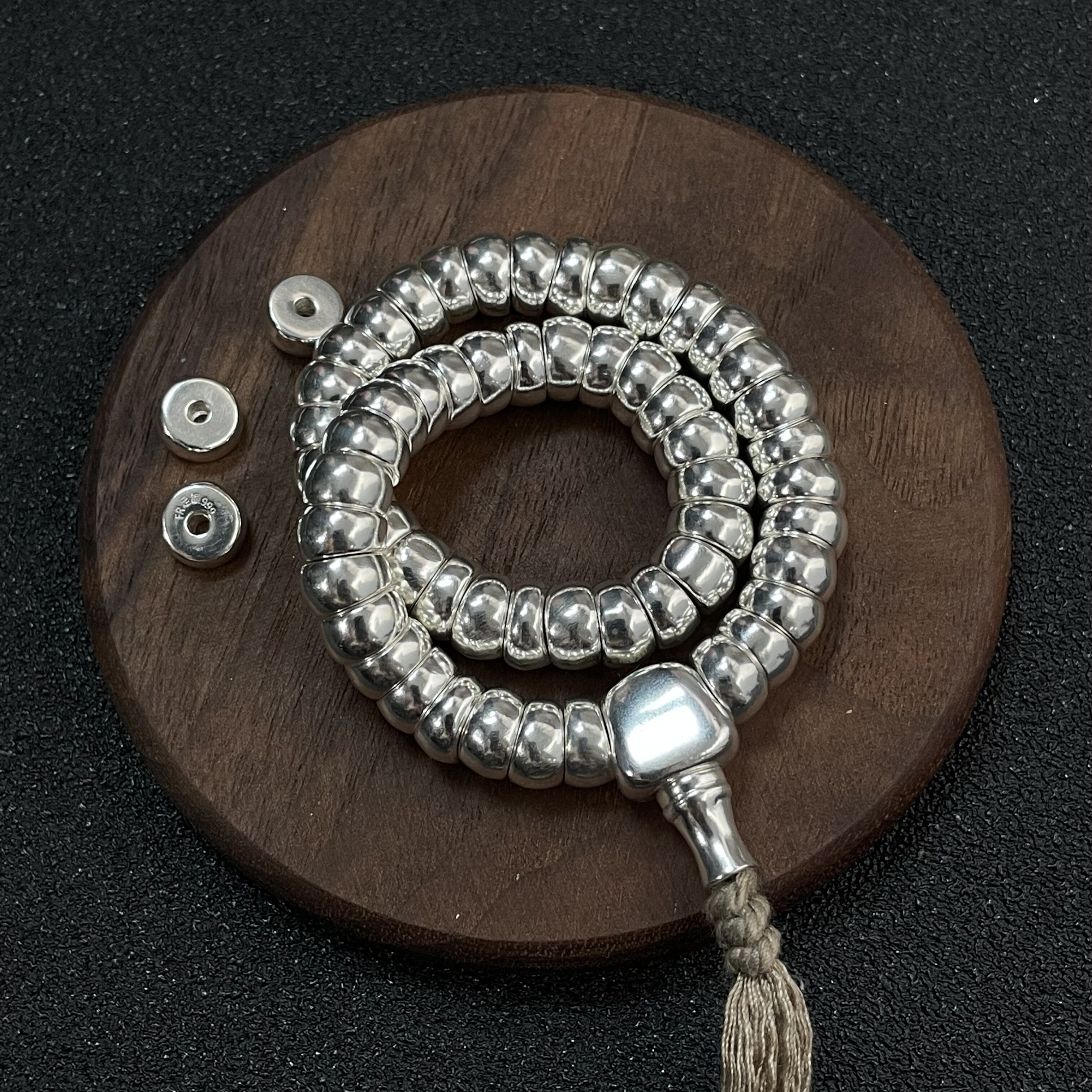 足银999猪大肠片珠单片实心配件diy手持手串配饰大肠珠隔珠配珠