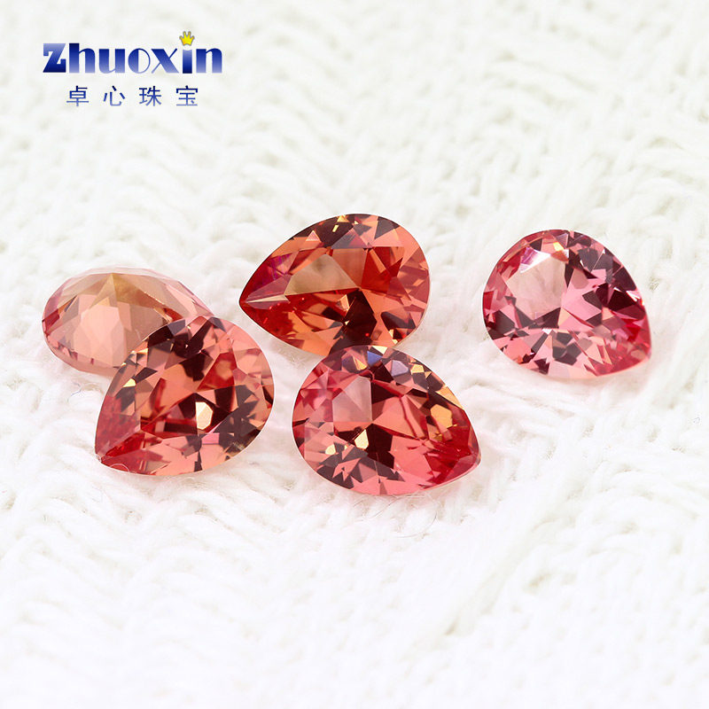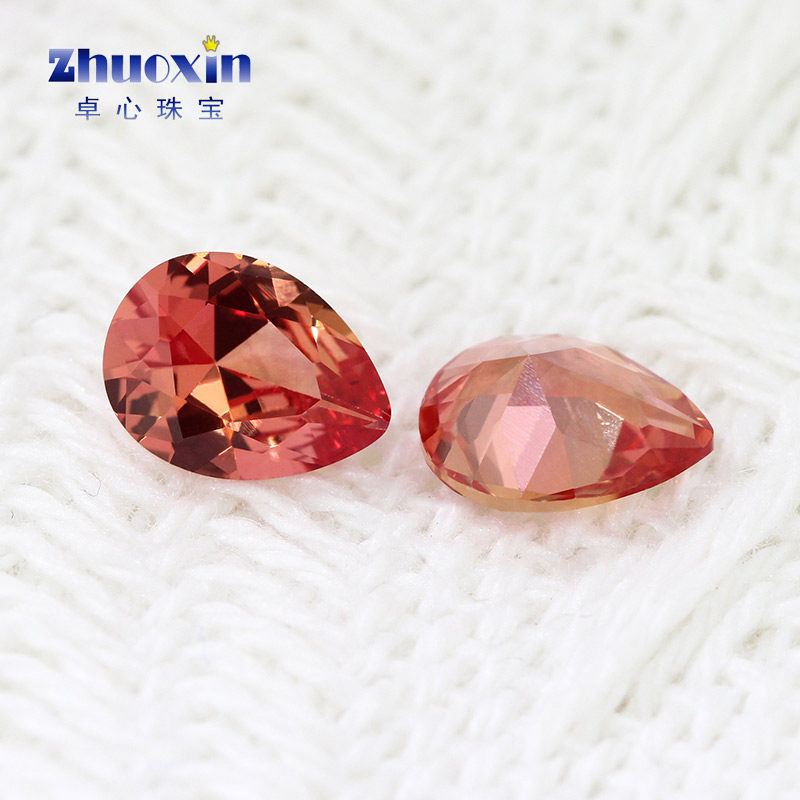 橙红色55#刚玉水滴形尖底裸石 梨形橙刚合成刚玉主石镶嵌可蜡镶