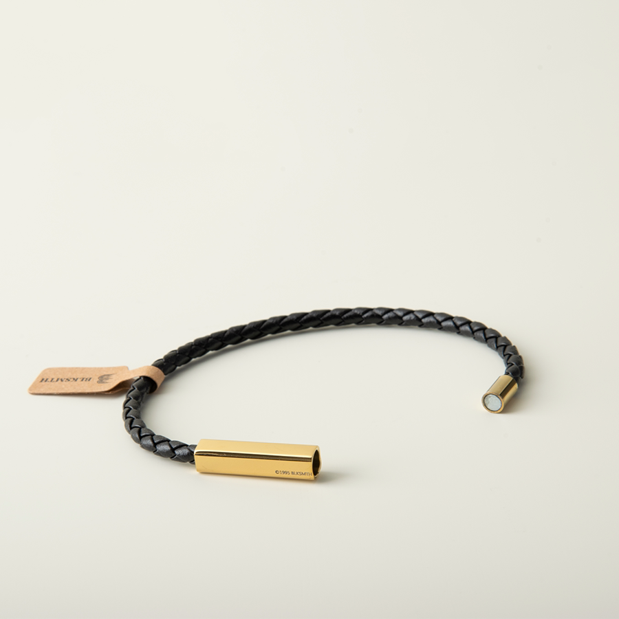 新品小金条4mm真牛皮黑色手环极简高档男女手绳方磁吸手镯运动