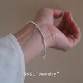 TYUSHA闪闪星河S925碎银子手链女手工纯银珍珠碧玺手链小众设计女