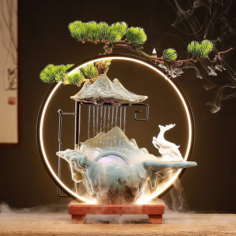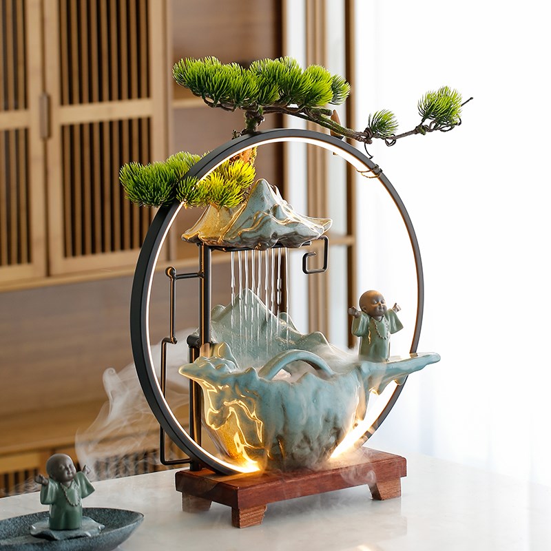 招财流水摆件创意家居玄关生财喷泉客厅办公室桌面装饰品开业礼品