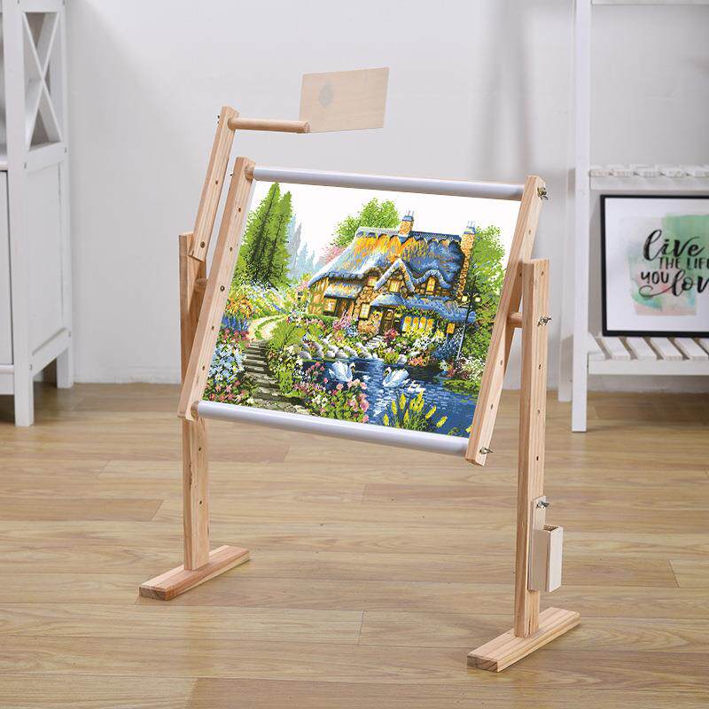 松木可调刺绣花架 床上绣十字绣架 台式绣架子大号创意苏绣框支架