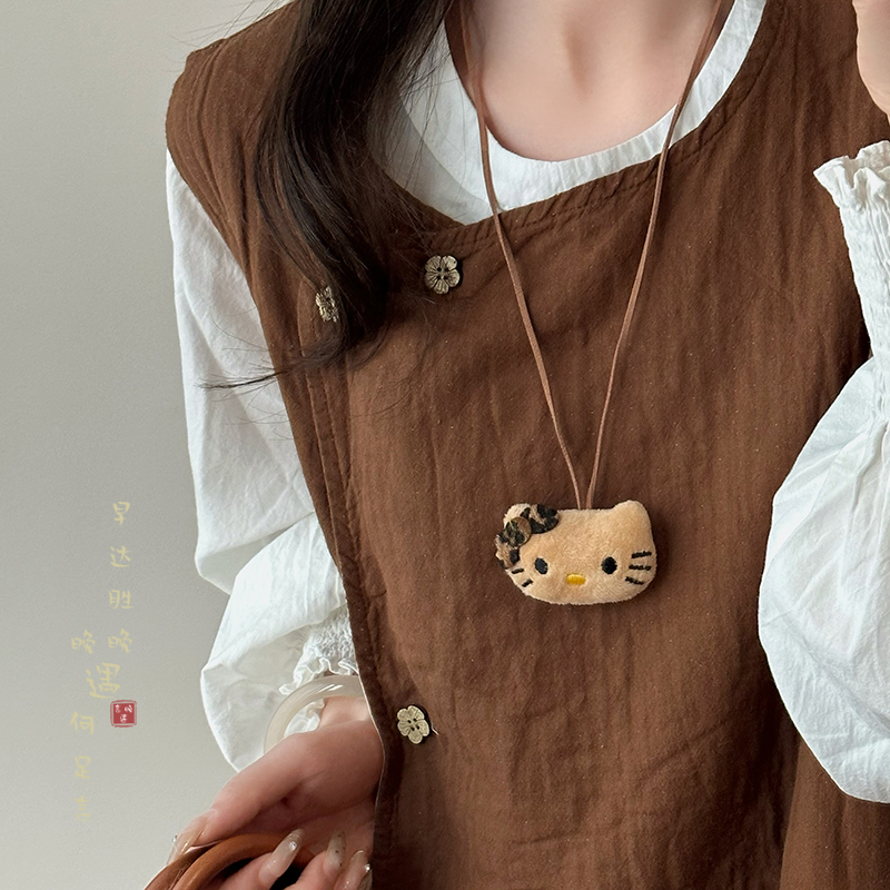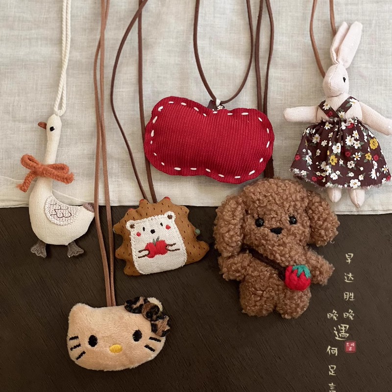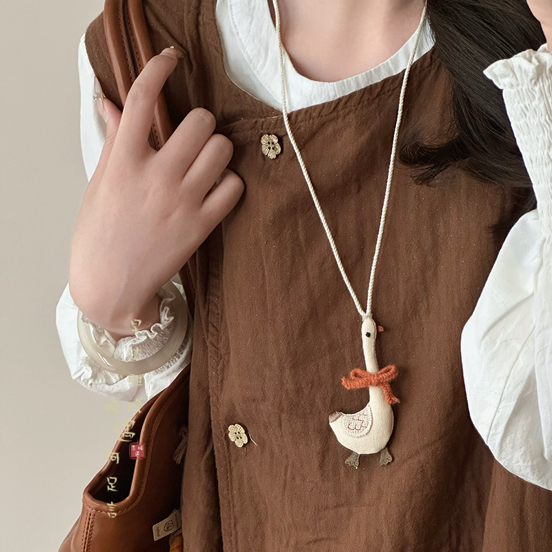 可爱卡通布艺小熊玩偶挂脖项链女复古小众设计感毛衣链甜美配饰品