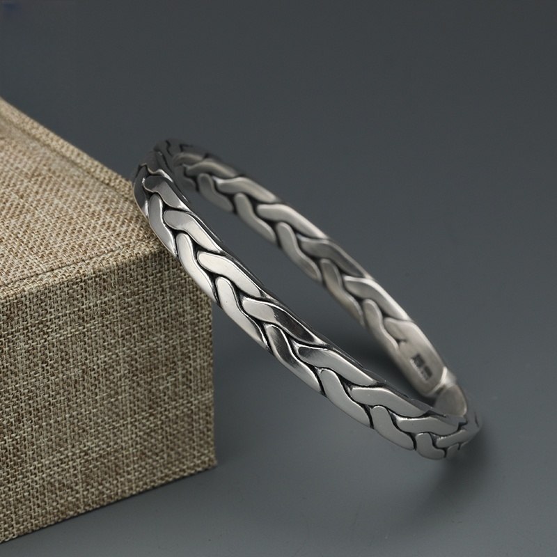 编织雪花银手镯足银999麻花扭丝银镯子手工定制开口实心情侣男女