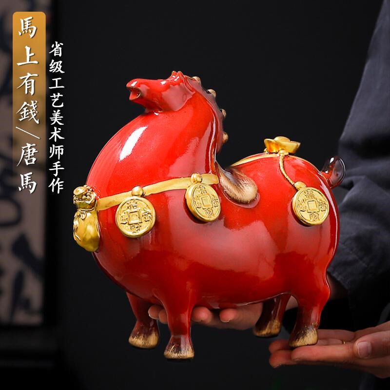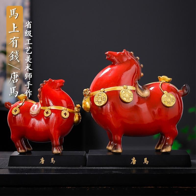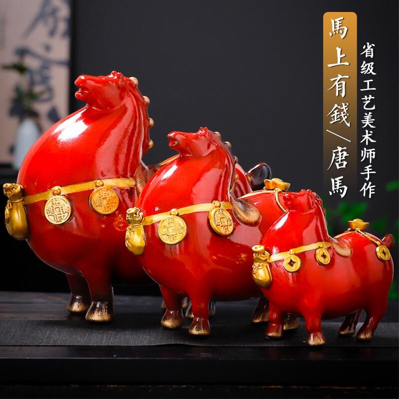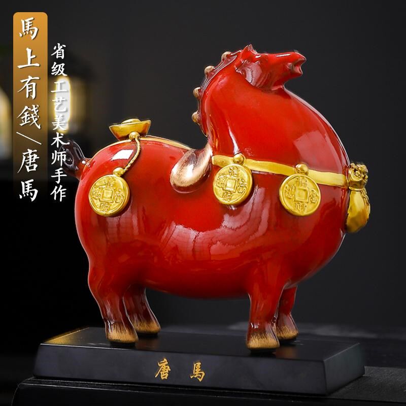 陶瓷马上有钱摆件红色招财马玄关摆设家居客厅装饰工艺礼品