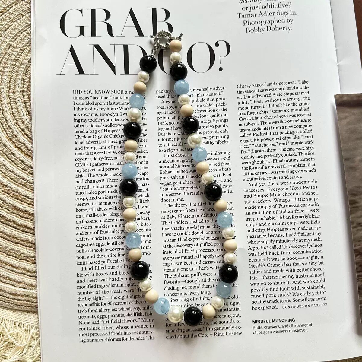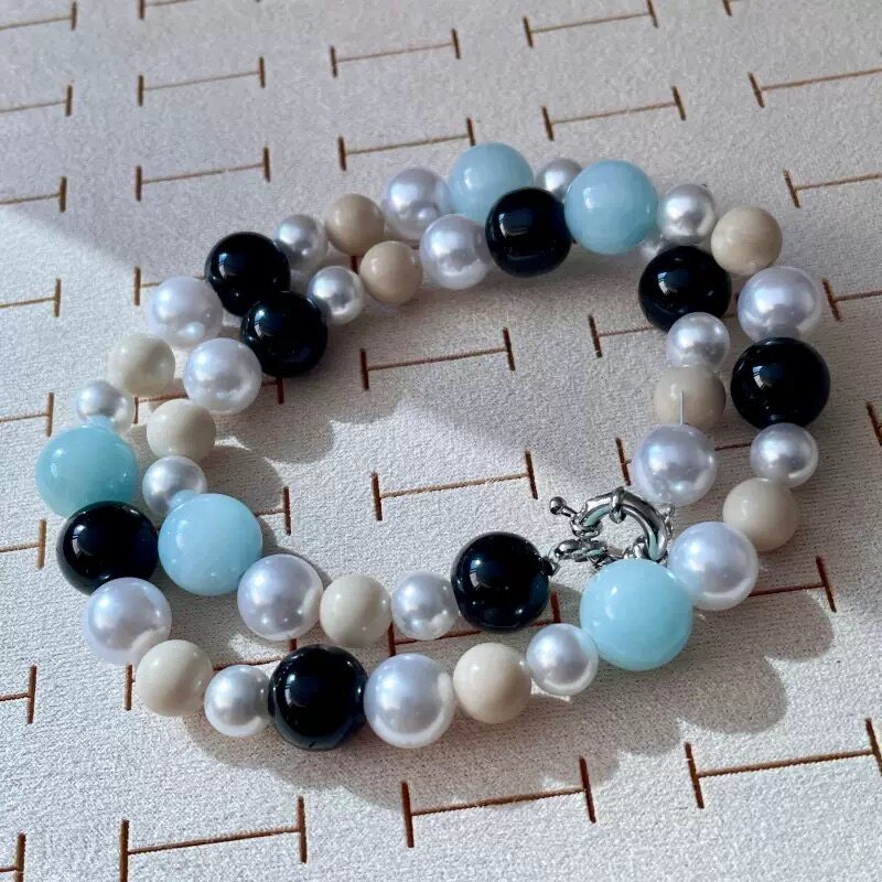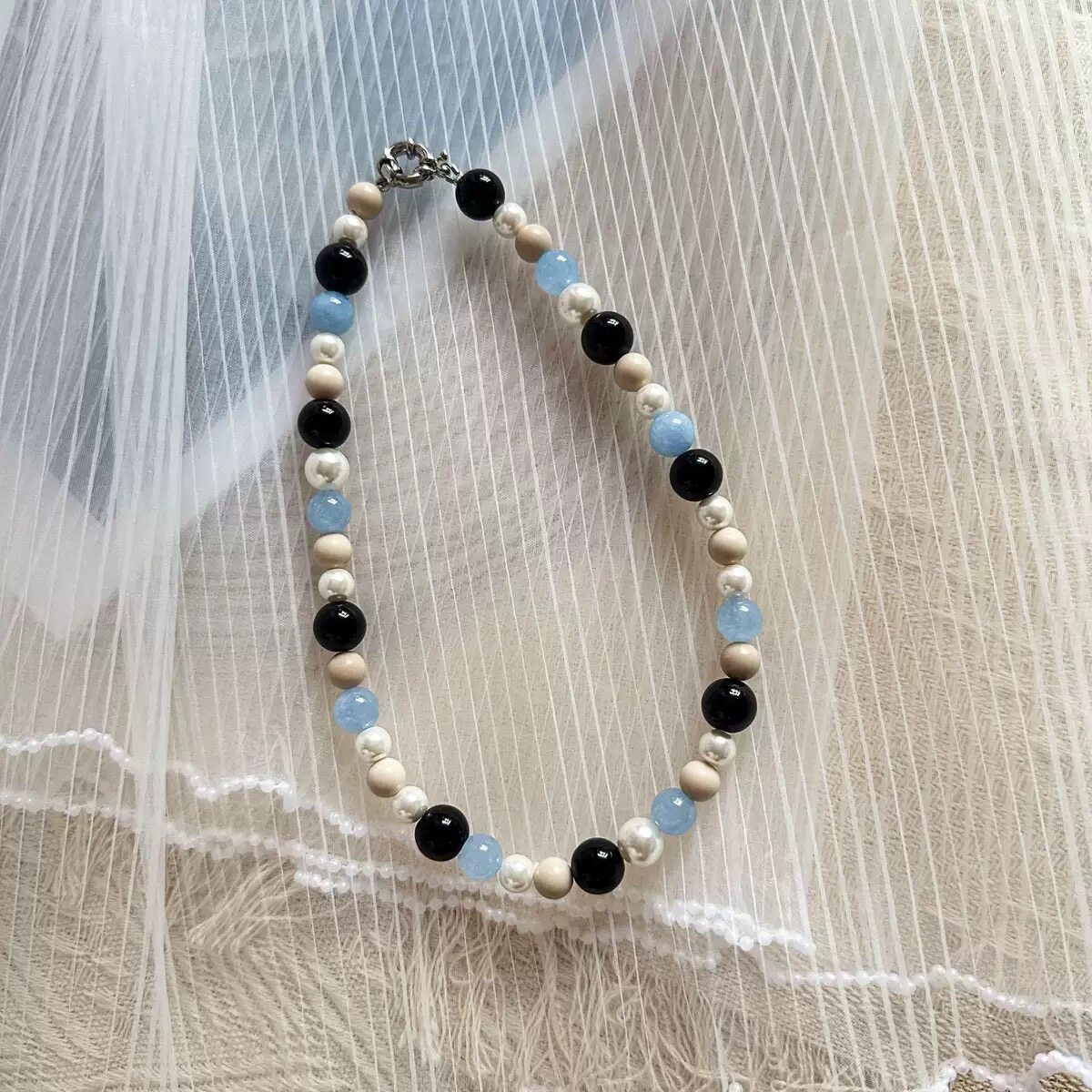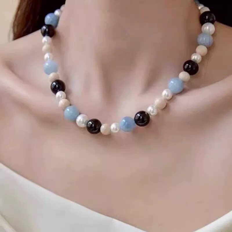 蓝色海蓝宝串珠珍珠海边度假项链女配饰秋高级感轻奢小众锁骨颈链
