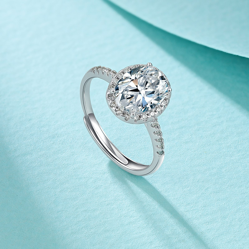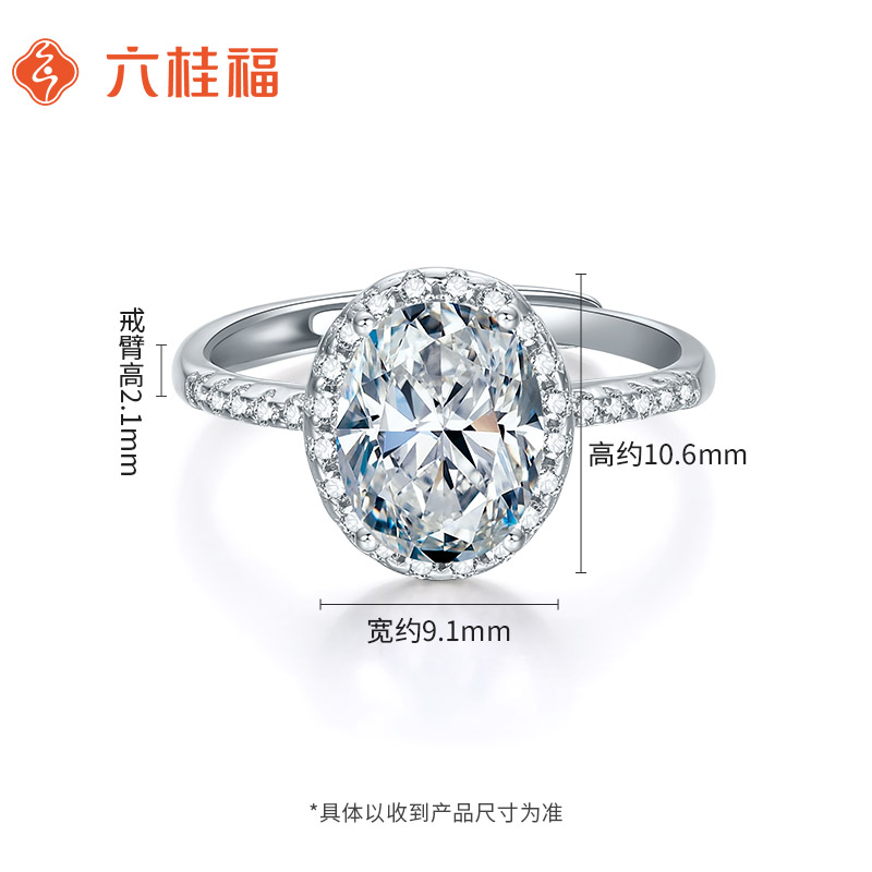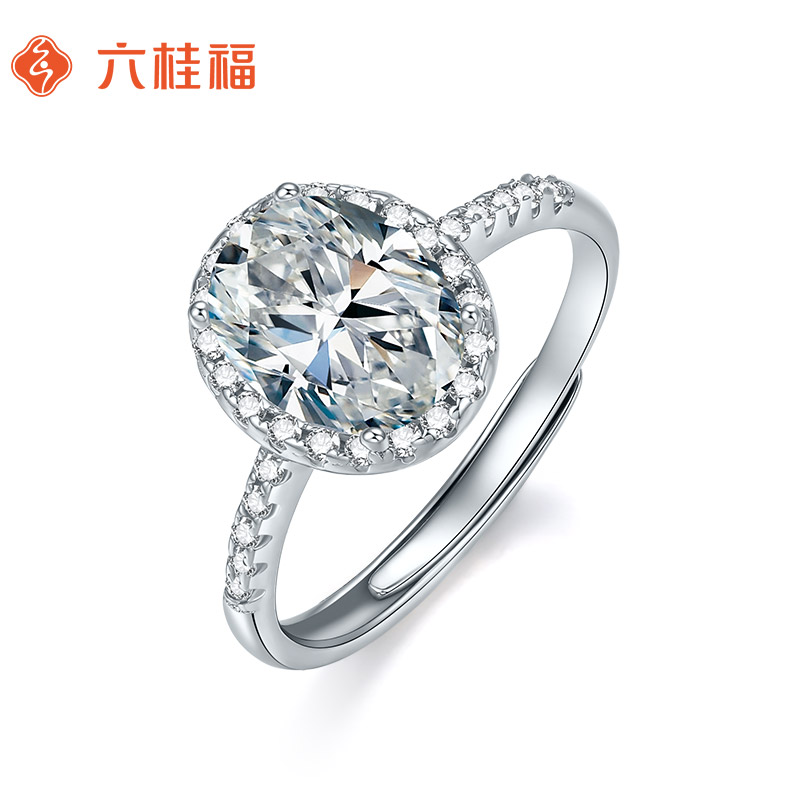 六桂福S925纯银镶锆石戒指一克拉钻戒求婚订婚结婚指环礼物