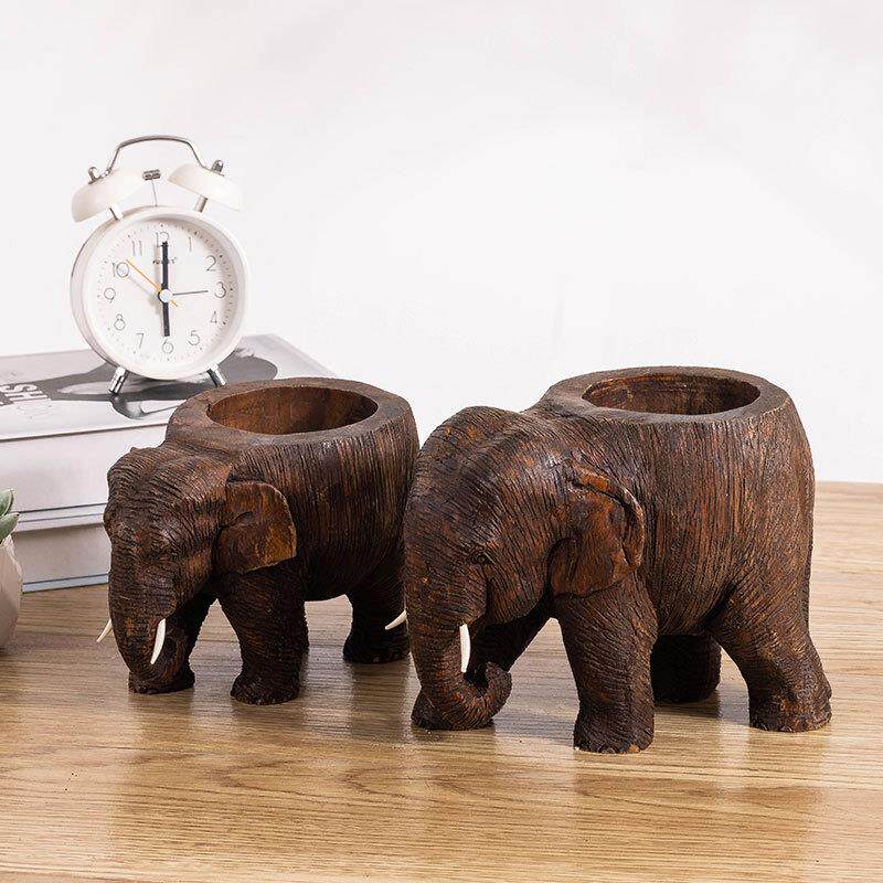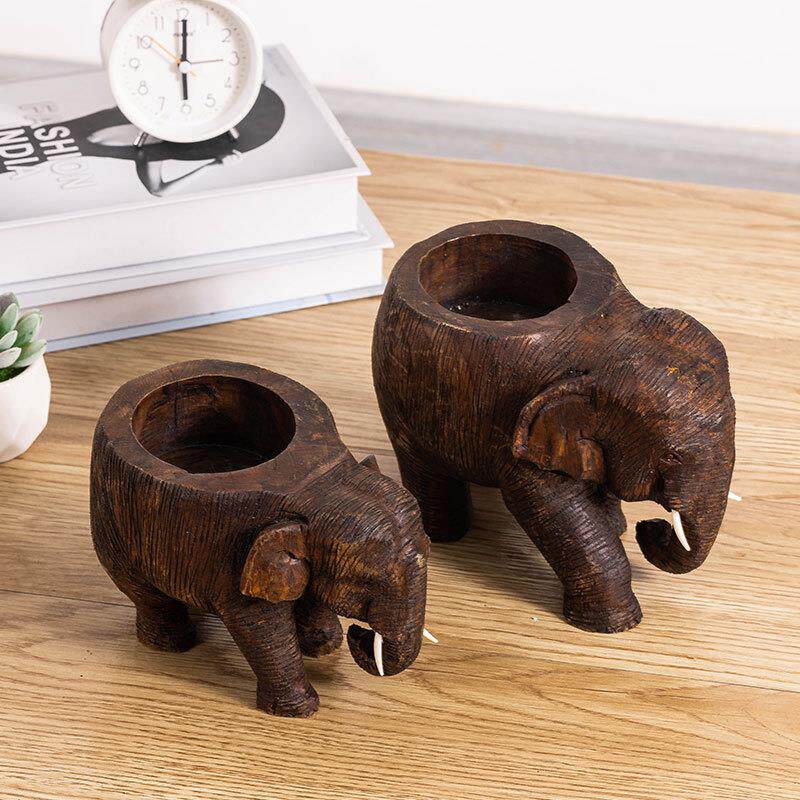 东南亚实木雕刻小大象烟缸家用厅创意灰个性防风动客YJH物公办室