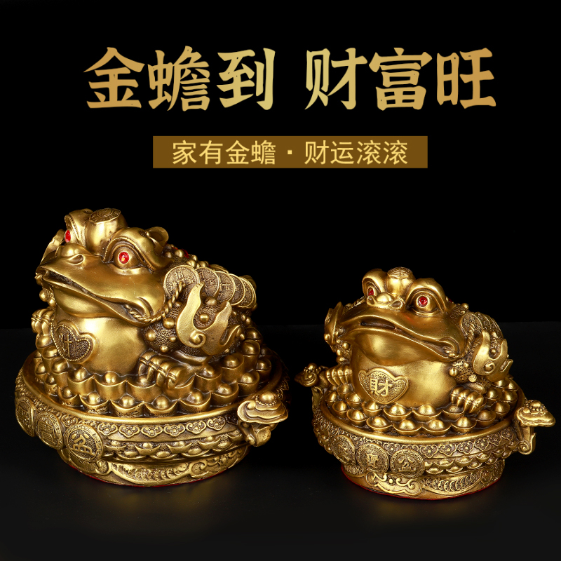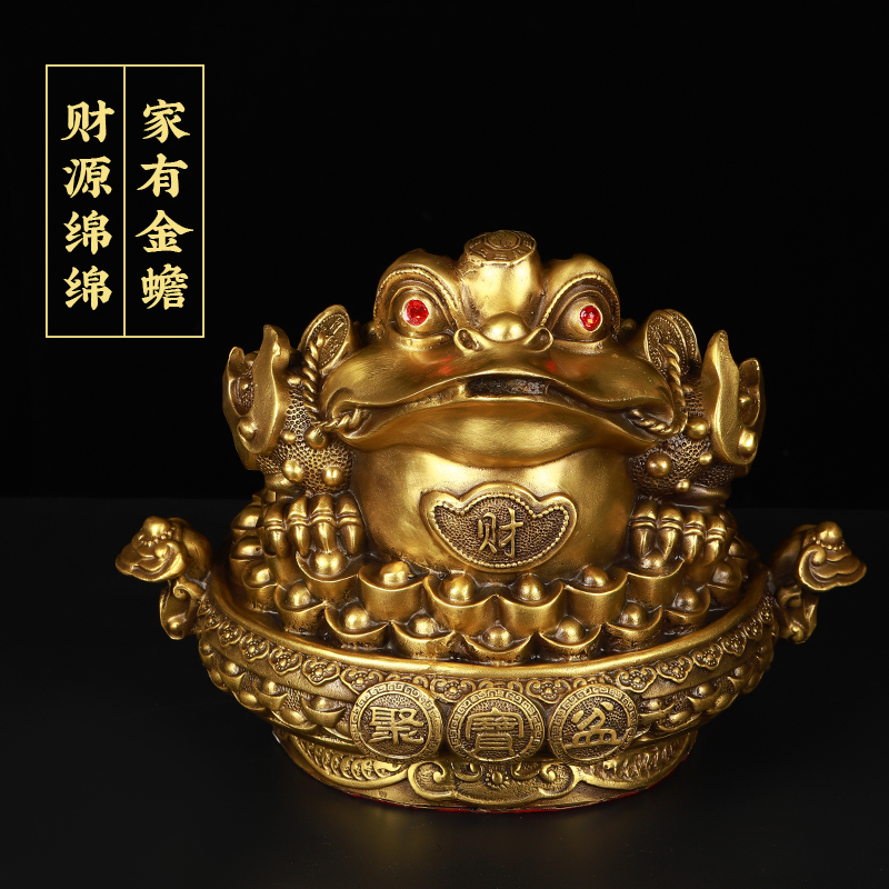 寅亥堂纯黄铜聚宝盆金蟾摆件玄关办公桌子商场店铺收银台前台摆放