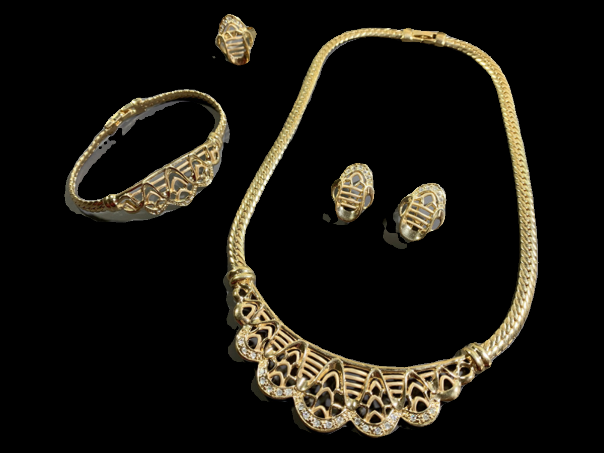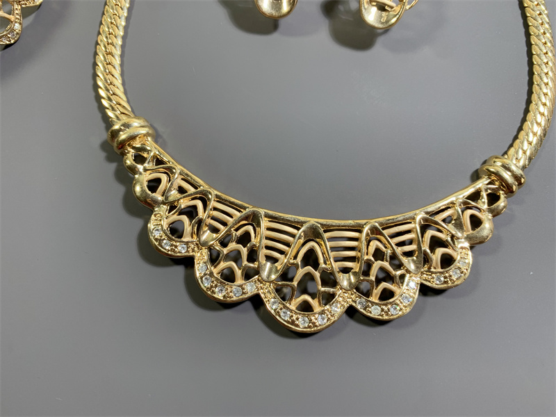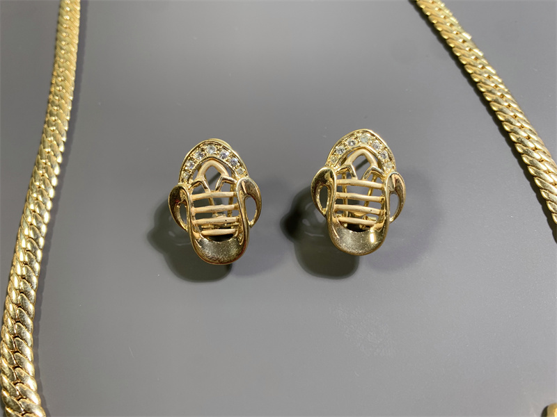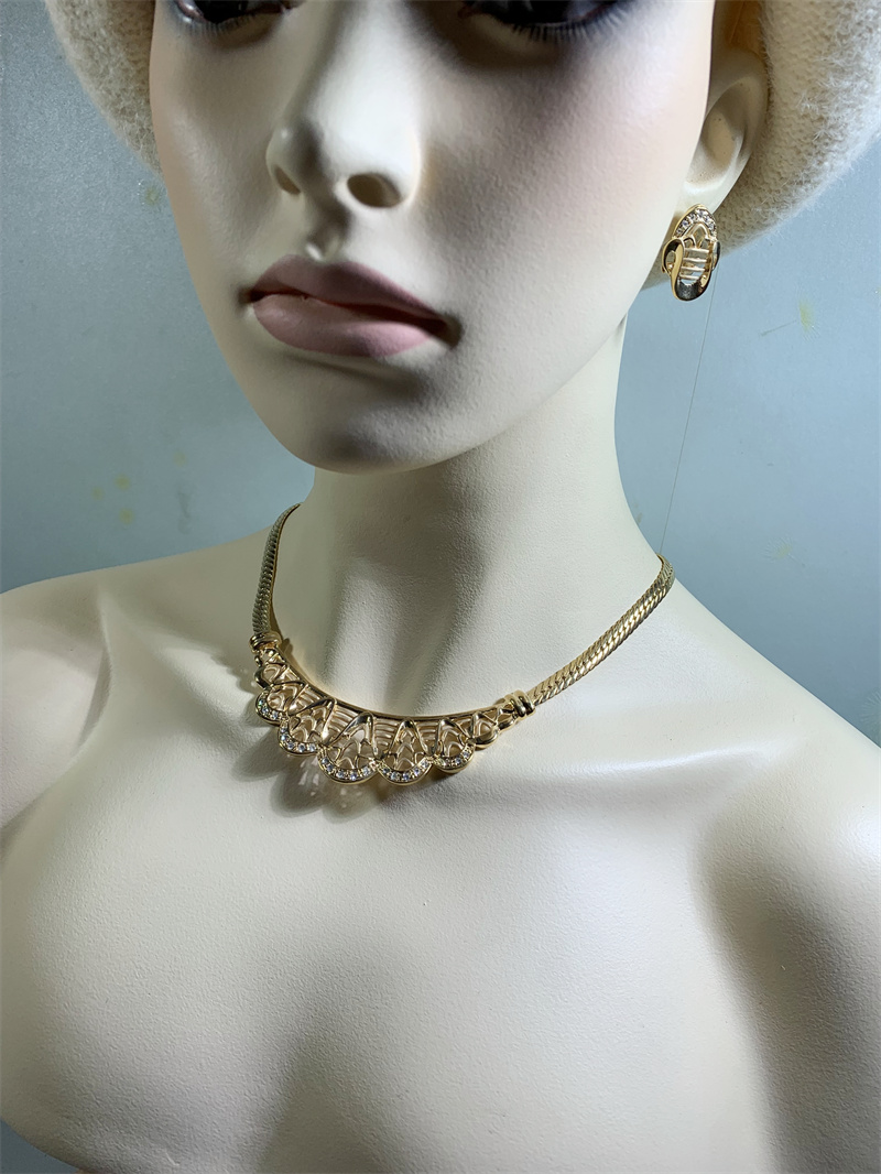 Vintage中古欧洲回流宫廷风花边波浪造型耳钉项链戒指手链套装