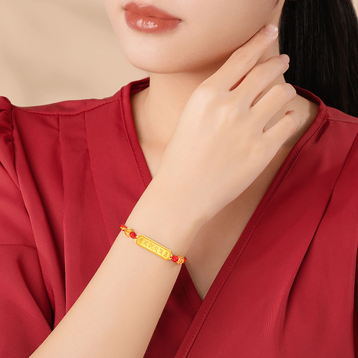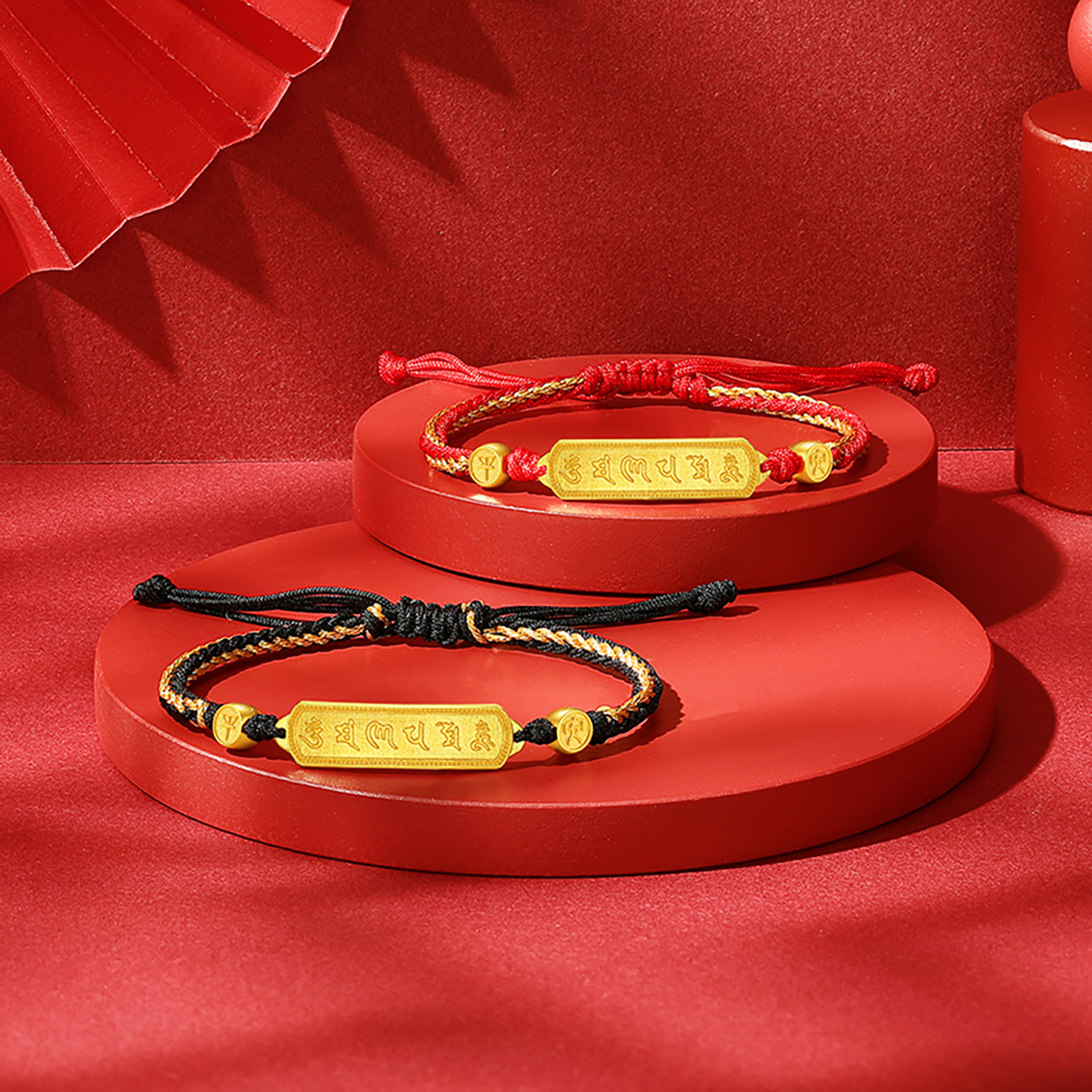 潮宏基臻金弘黄金手绳足金手链手饰六字真言红黑绳情侣 计价生日