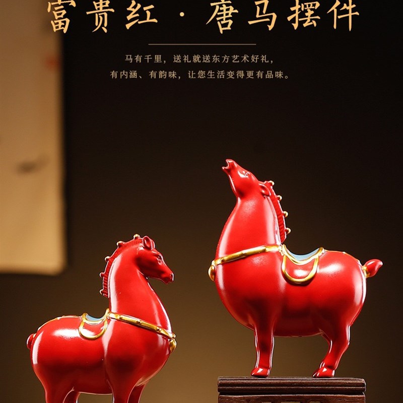 西安文创陶瓷富贵唐马摆件唐三彩创意家居办公室桌面书房装饰工艺