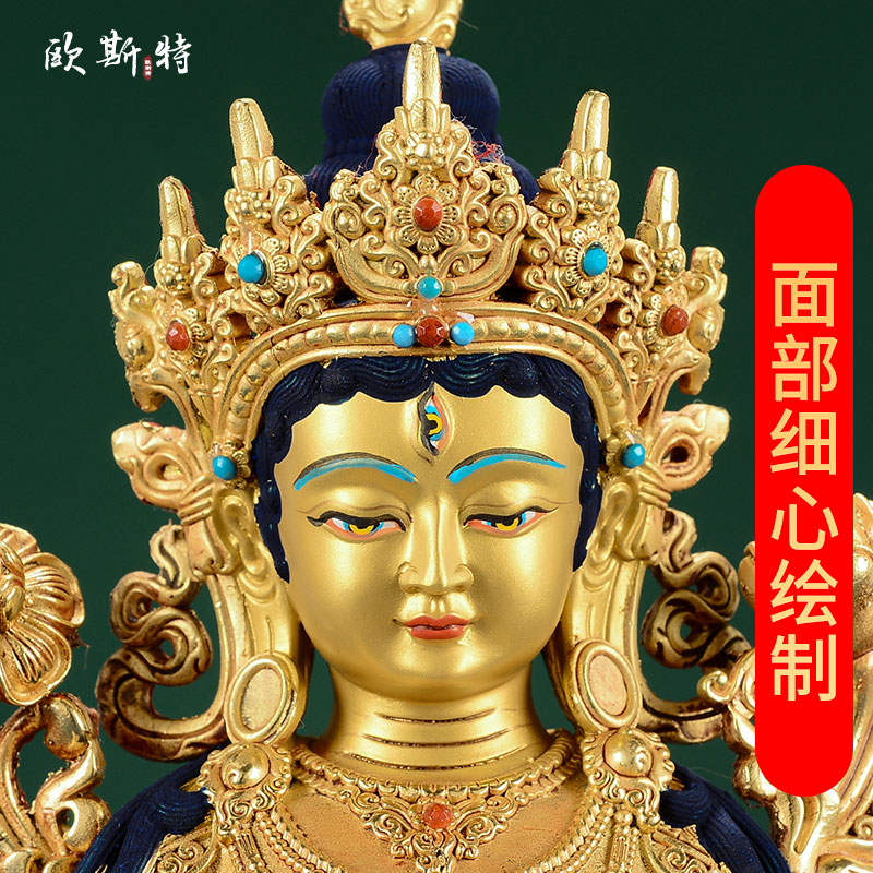 欧斯特《白度母铜像》家居客厅玄关像 全鎏金雕花桌面中式摆件7寸
