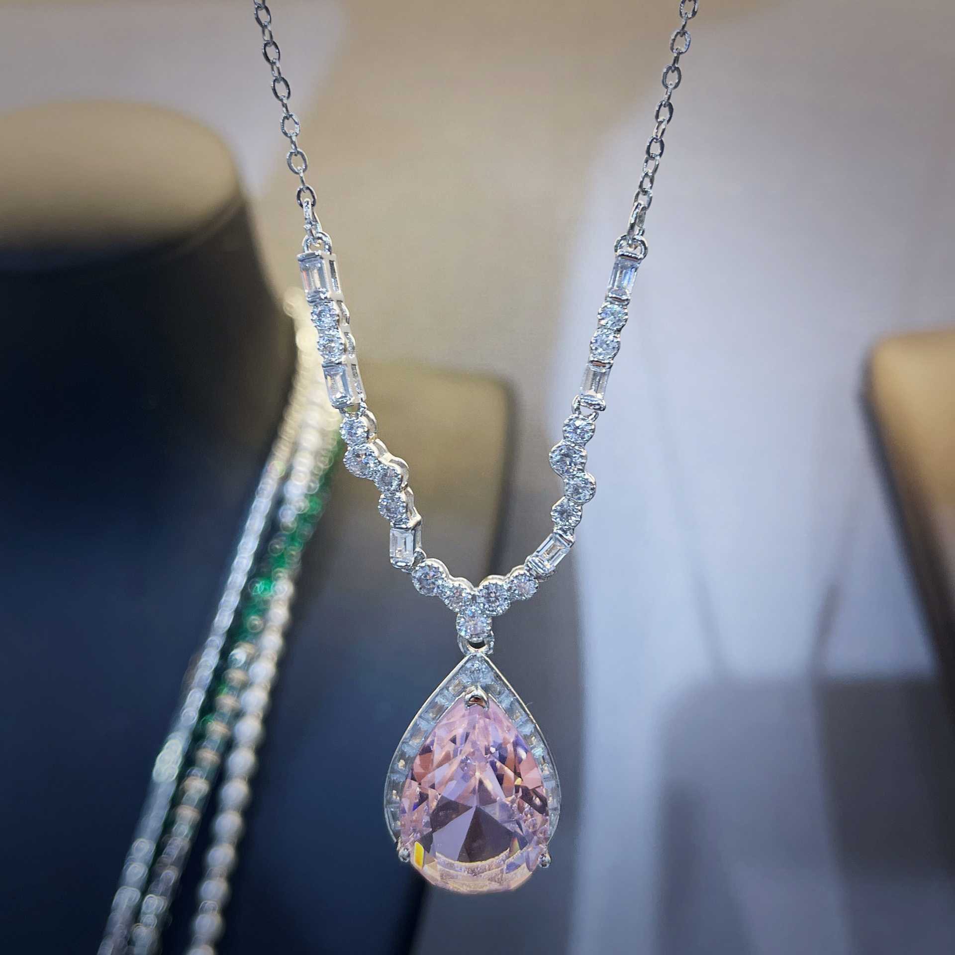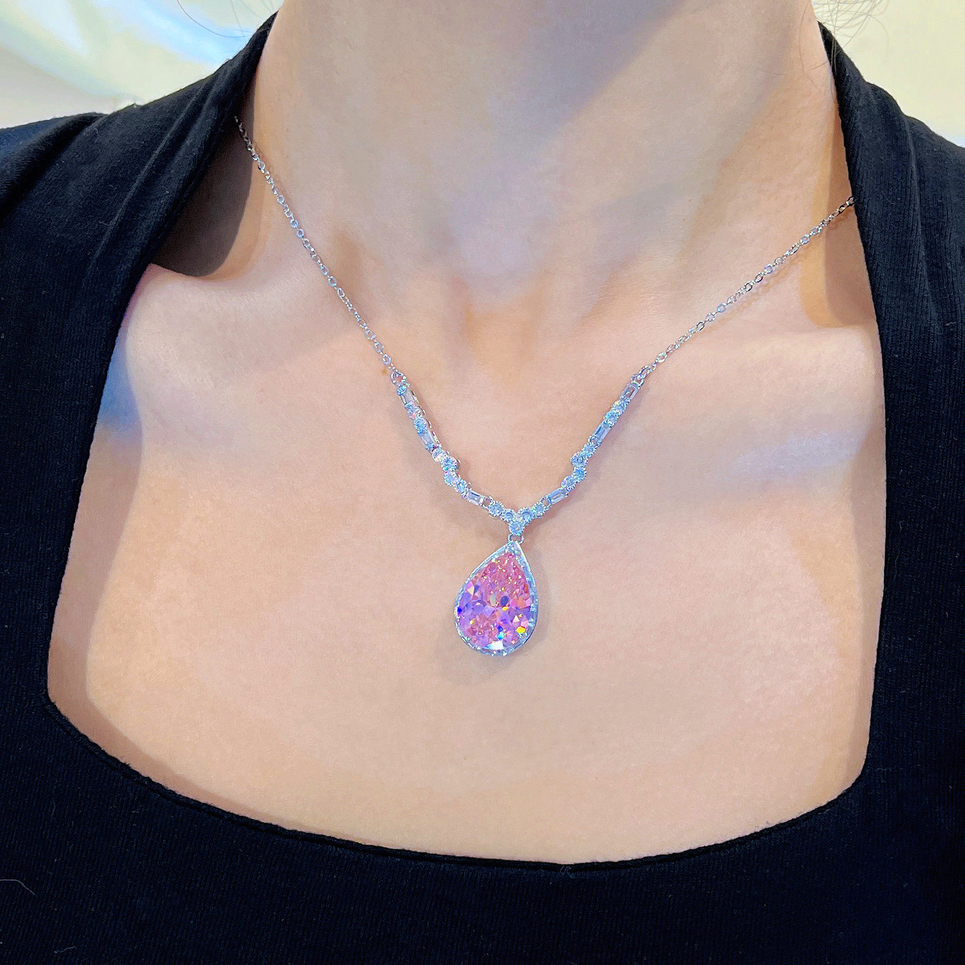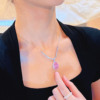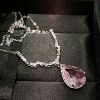 Young抖音直播仿天然摩根石水滴梨形项链 豪镶满钻樱花粉钻套链女