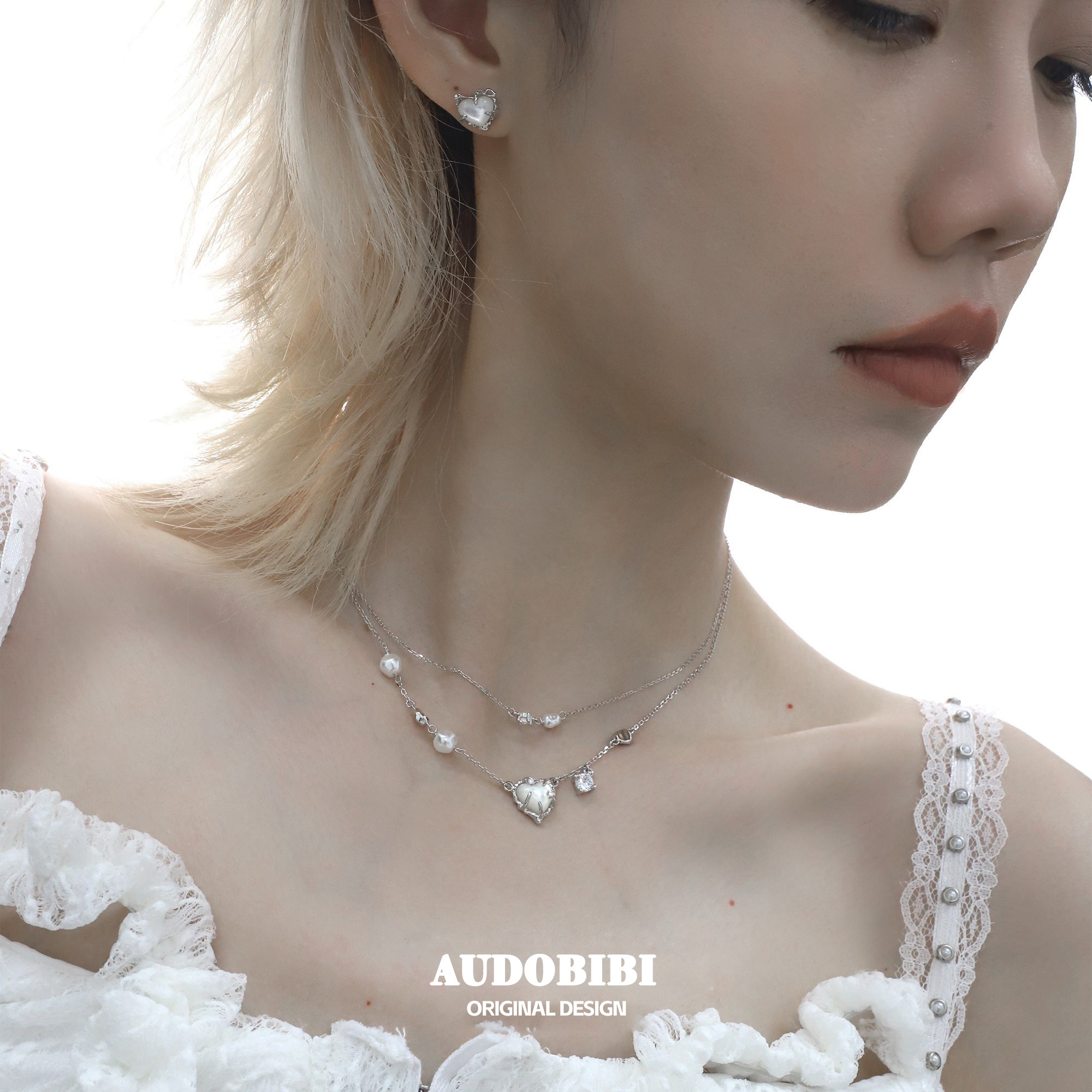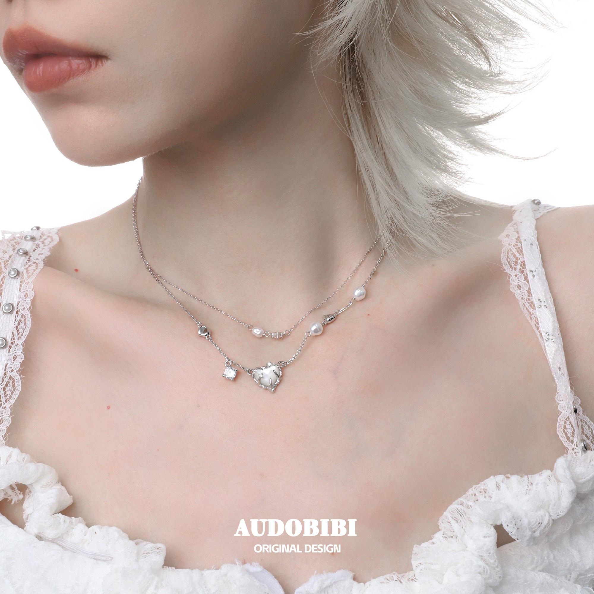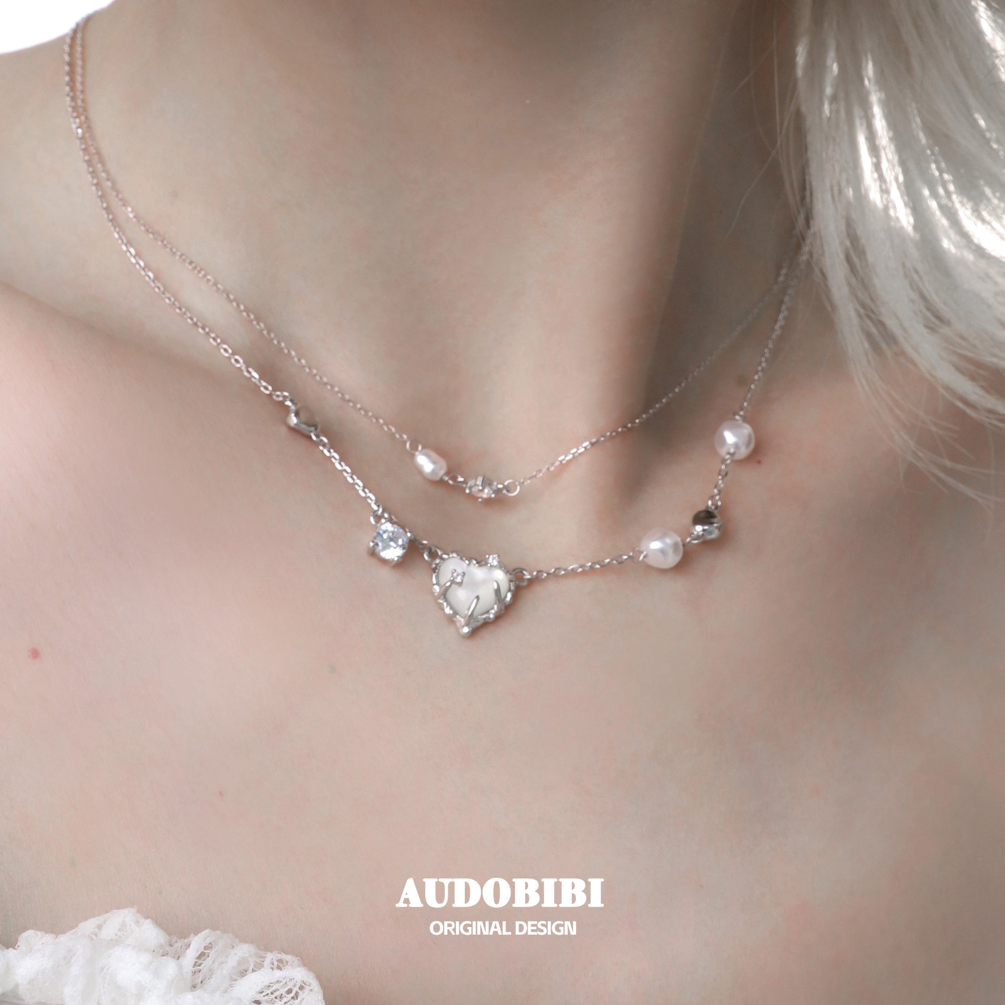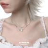小众925纯银白蝶贝爱心双层项链女镶钻不掉色简约高级冷淡锁骨链