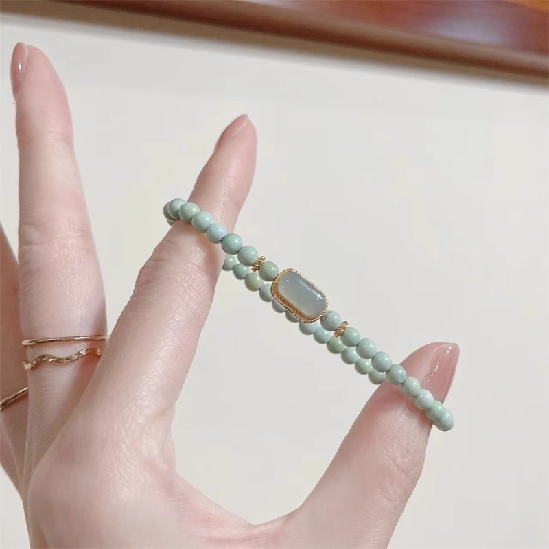 新中式绿色串珠手链女小众高级复古风气质手串闺蜜