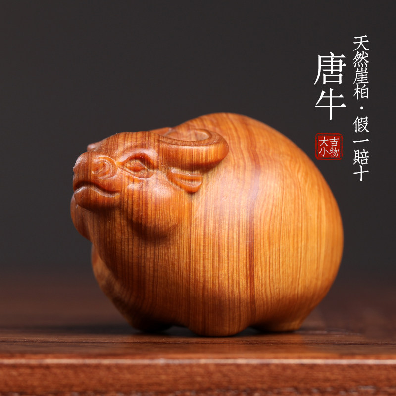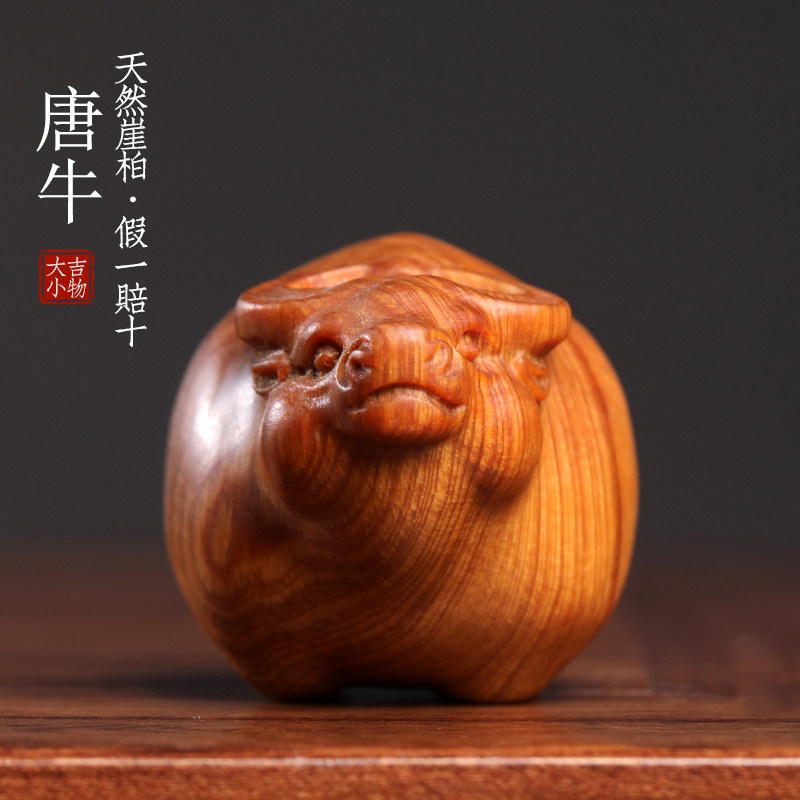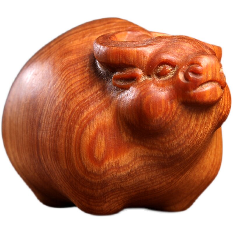 天然太行崖柏木手工雕刻胖牛生肖牛文玩招财手把件随身转运摆件