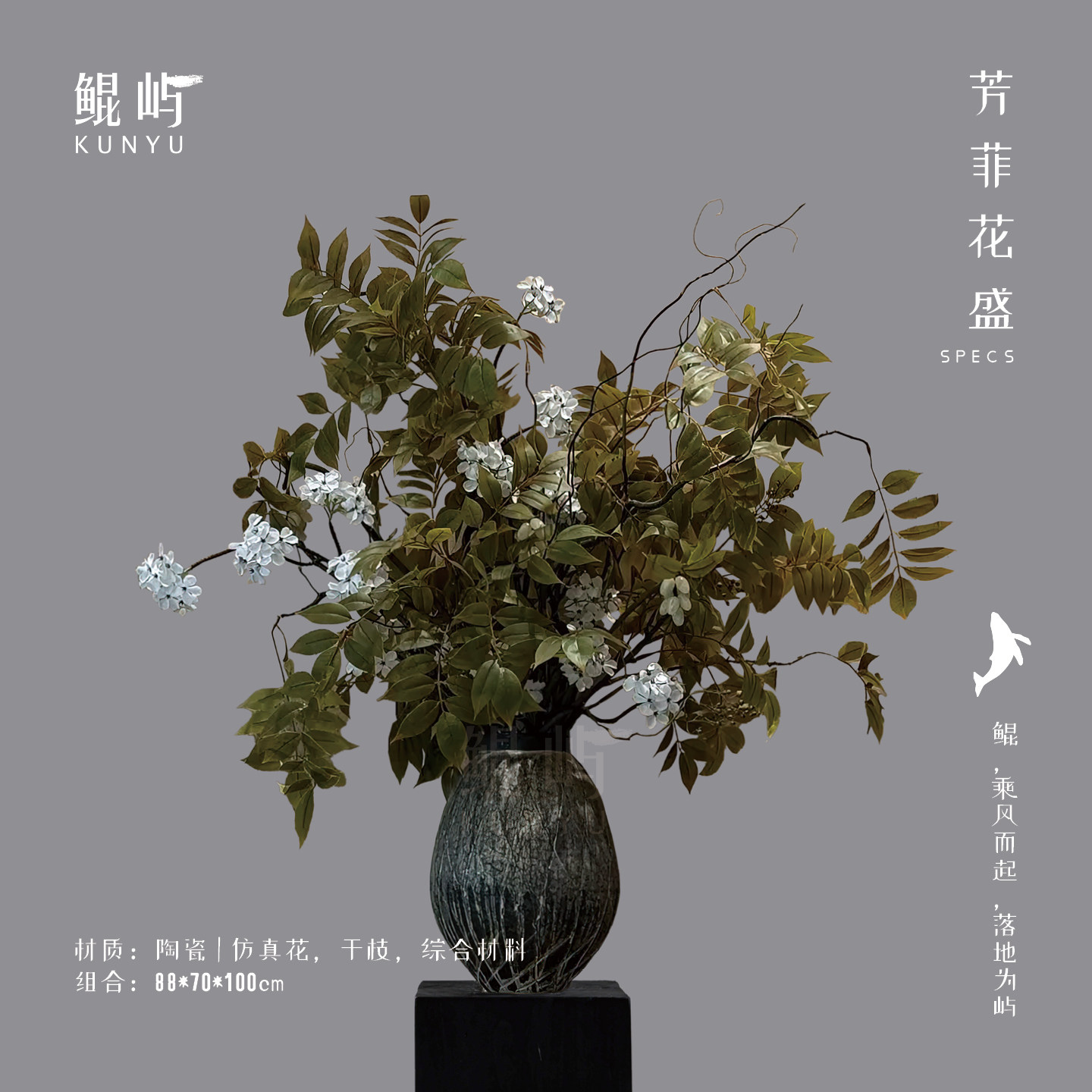 鲲屿 大型新中式绿色仿真花【芳菲花盛】酒店大堂圆桌售楼处摆件