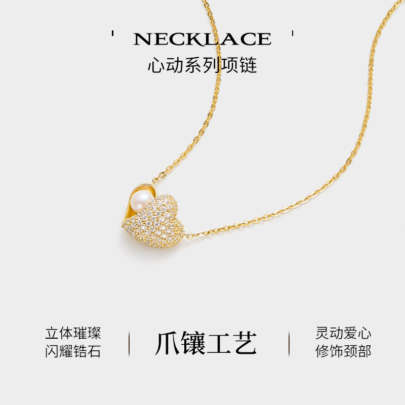 JAY心动系列爱心项链珍珠吊坠精致锁骨链高级感情人节礼物送女友