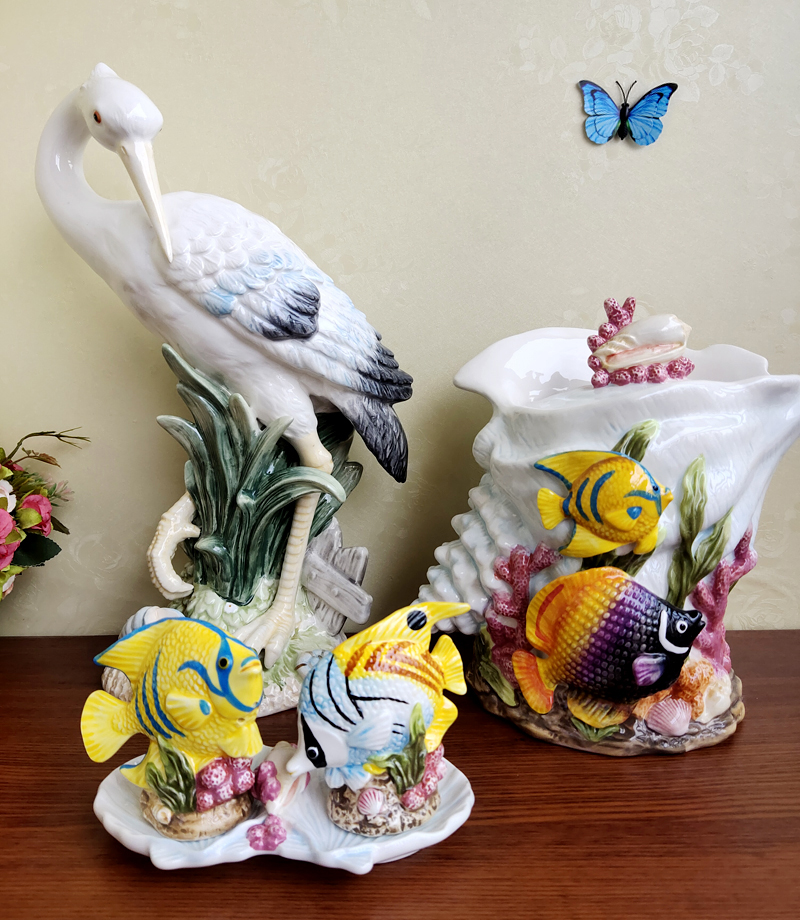 出口陶瓷白鹭摆件欧式客厅电视柜茶几高档装饰摆设生日祝寿礼物