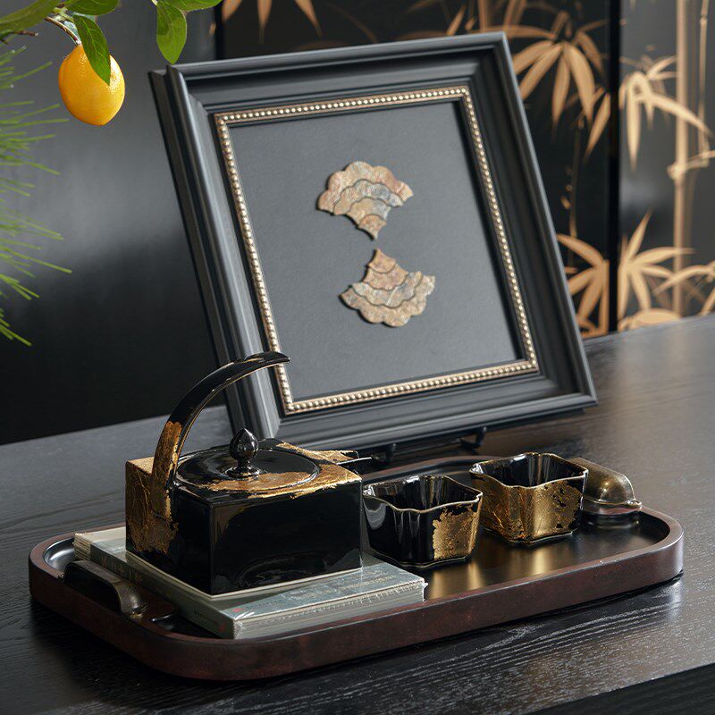 商业酒店售楼处茶馆大堂端景条案茶桌艺术展示摆件装饰品组合设计