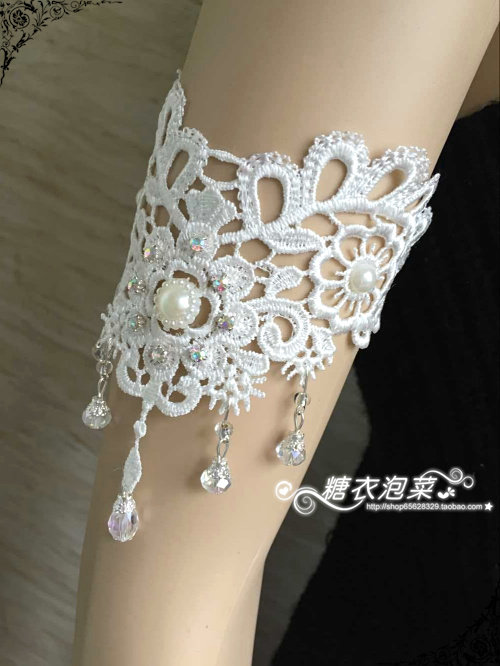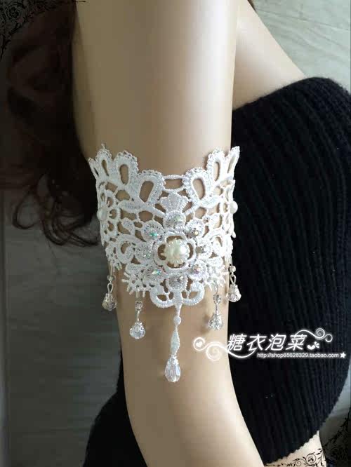 新品欧美婚纱礼服配饰花卉钉珠水晶臂饰 臂环带水滴镶钻白色手链