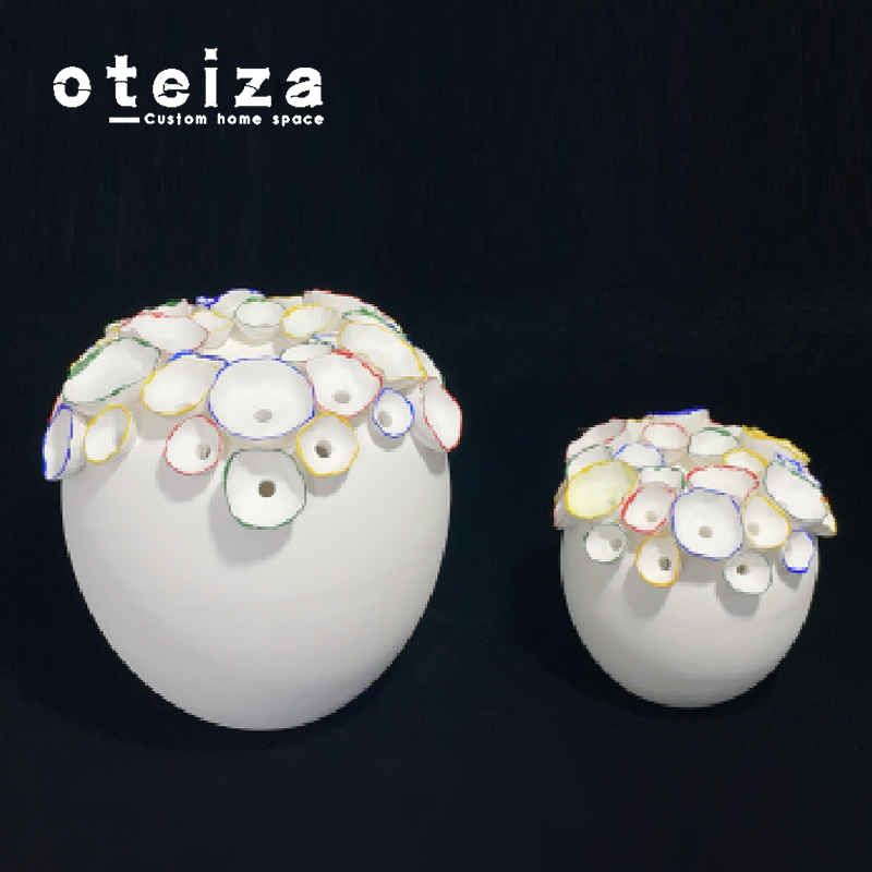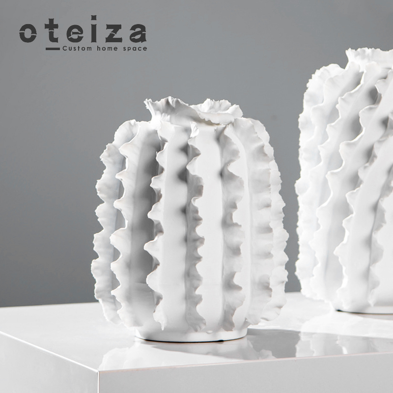 Oteiza现代手工拈花创意陶瓷花瓶样板房间摆件客厅白色装饰品花器