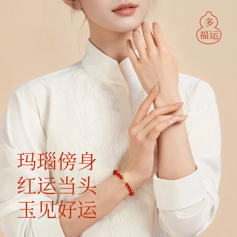 官方旗舰店红玛瑙手串女士和田玉转运珠天然水晶玛瑙红色手链补火