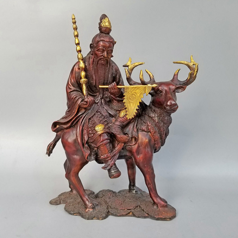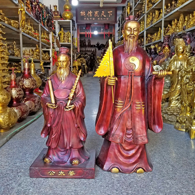 铜姜太公姜子牙骑四不像神像八卦令旗坐像封神榜站像定铜像做摆件