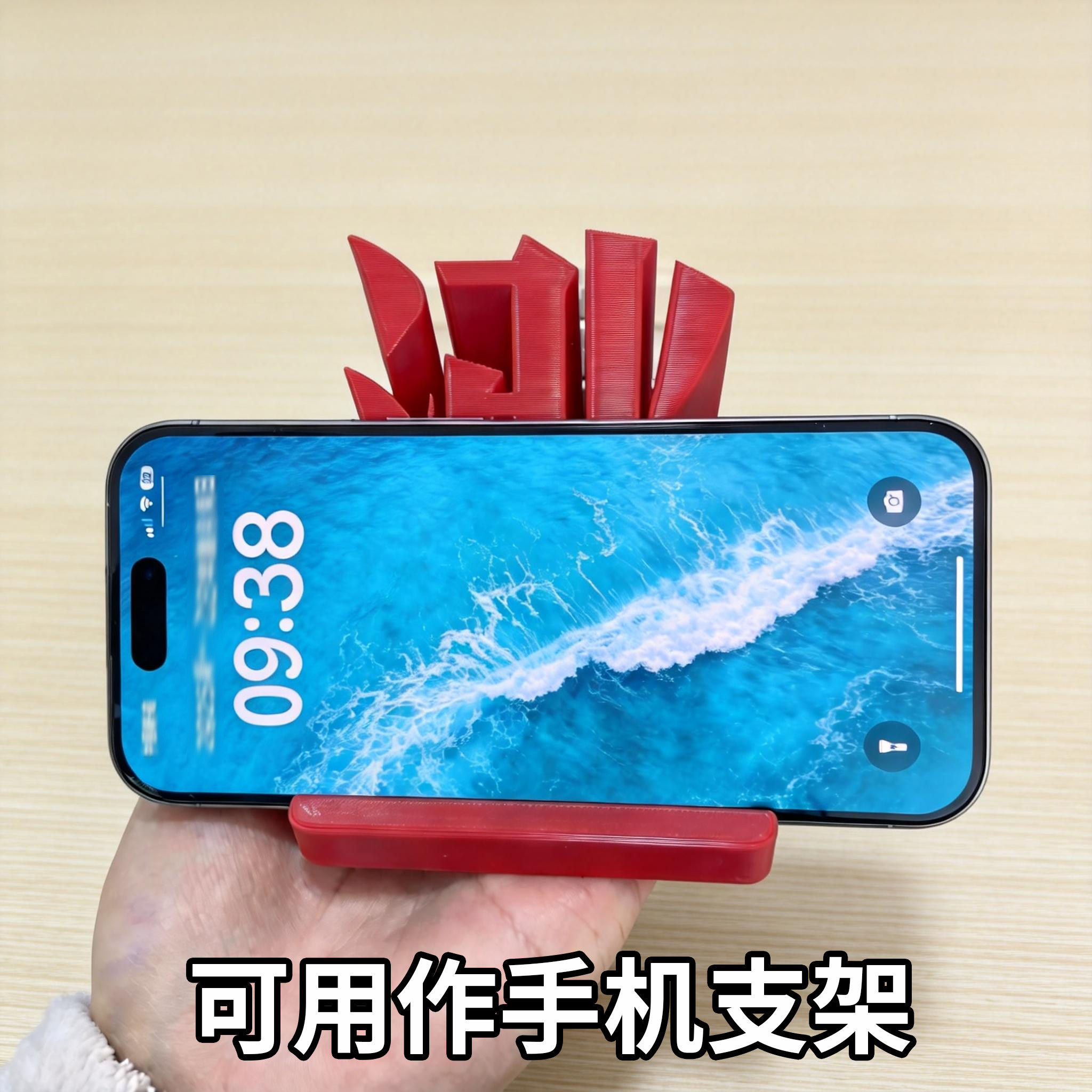 涨!桌面摆件红色创意醒目炫目民办公创意装饰3D打印手机支架
